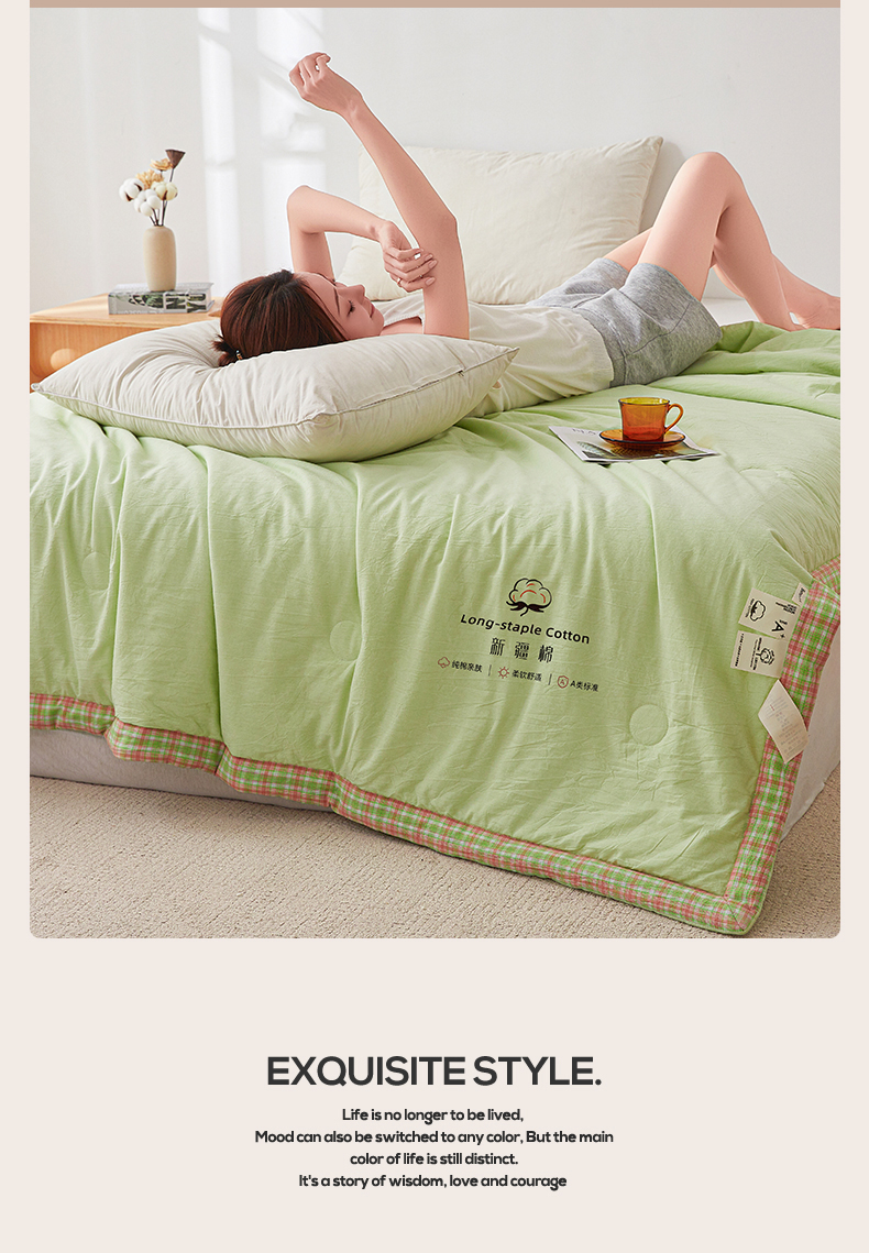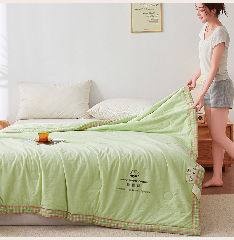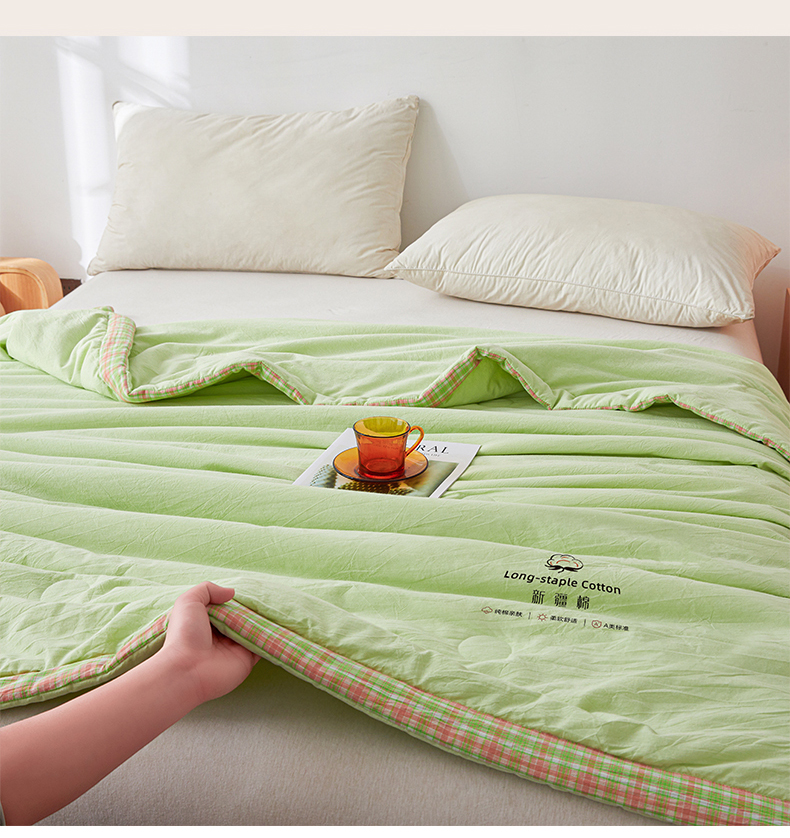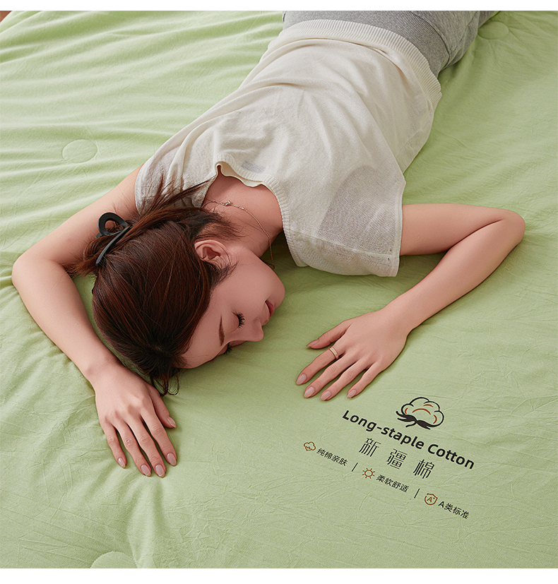被子 > 普通夏被 > 创优家纺 2026新款棉花夏被无印风纯色新疆棉夏凉被空调被棉花夏被棉花被子百分百新疆棉(专版烫画 盗版必究) 新疆棉-果绿