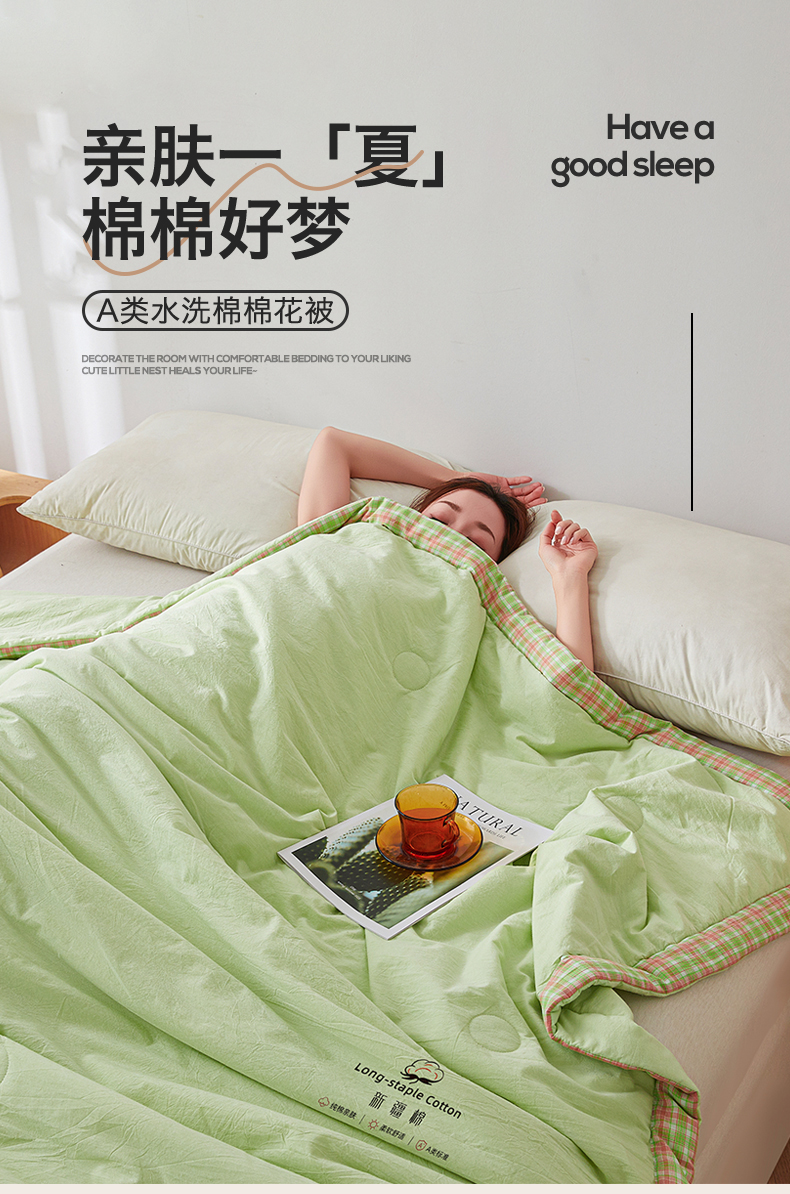 商品名称:创优家纺 2026新款棉花夏被无印风纯色新疆棉夏凉被空调被棉花夏被棉花被子百分百新疆棉(专版烫画 盗版必究) 新疆棉-果绿