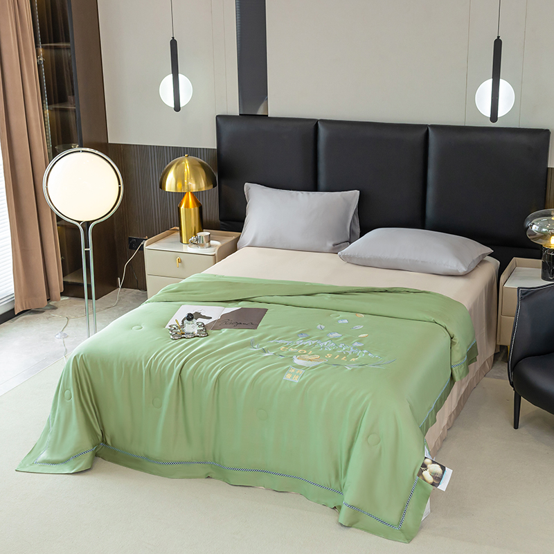 太阳羽家纺 2026新款40s冰蚕科技天丝镂空夏被绣花夏凉被空调被子 清雅冰-绿