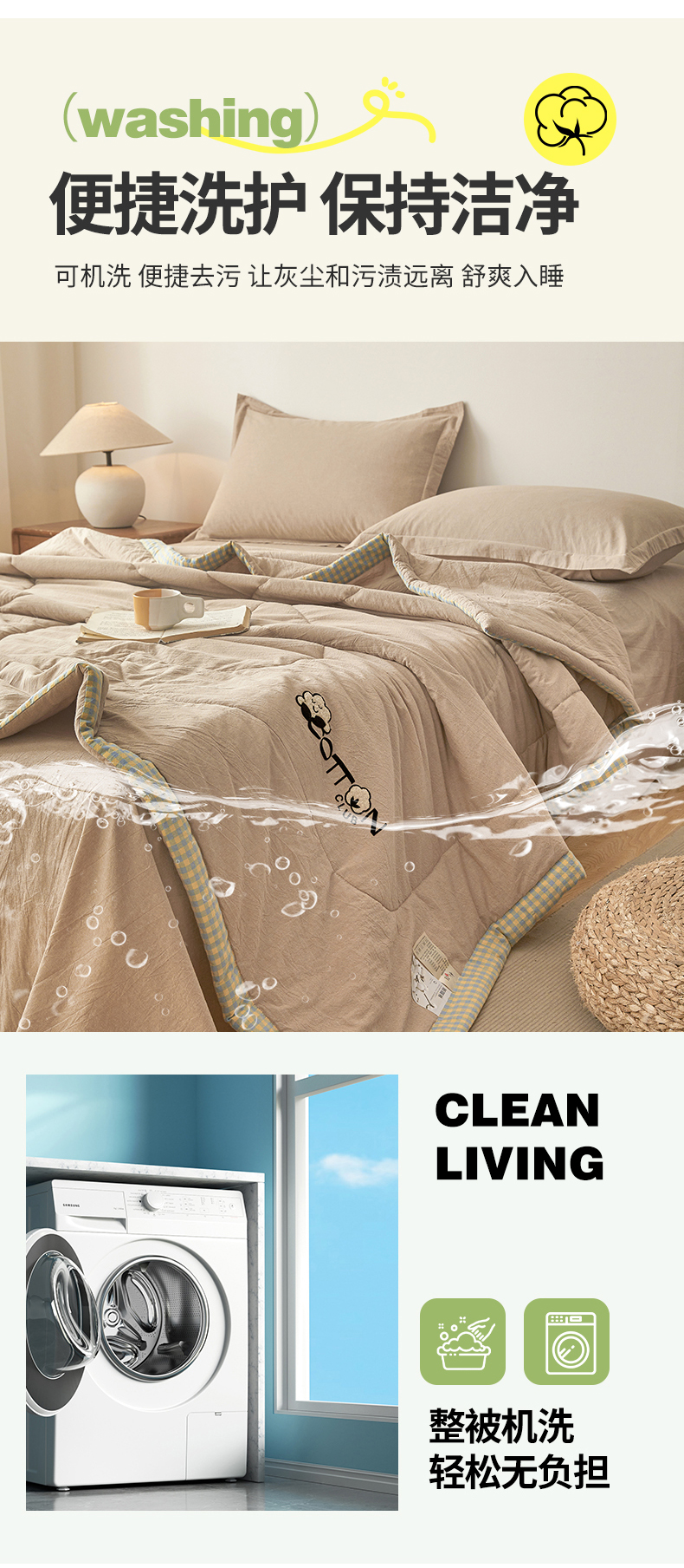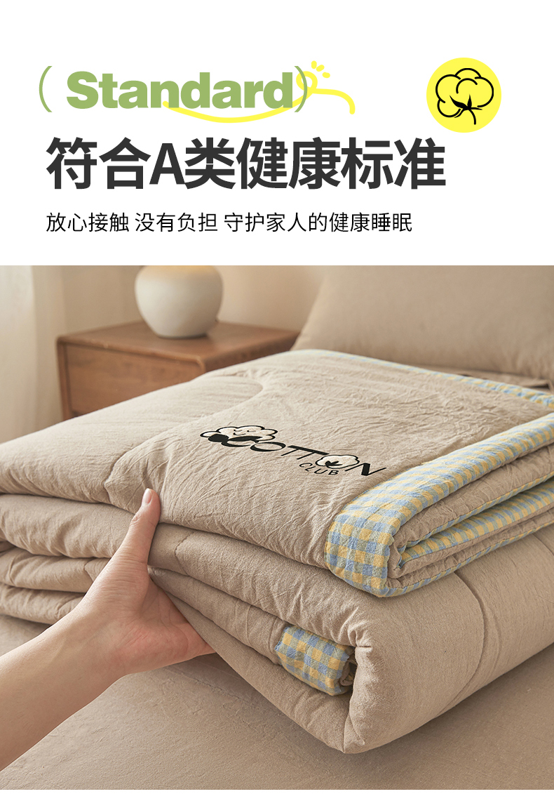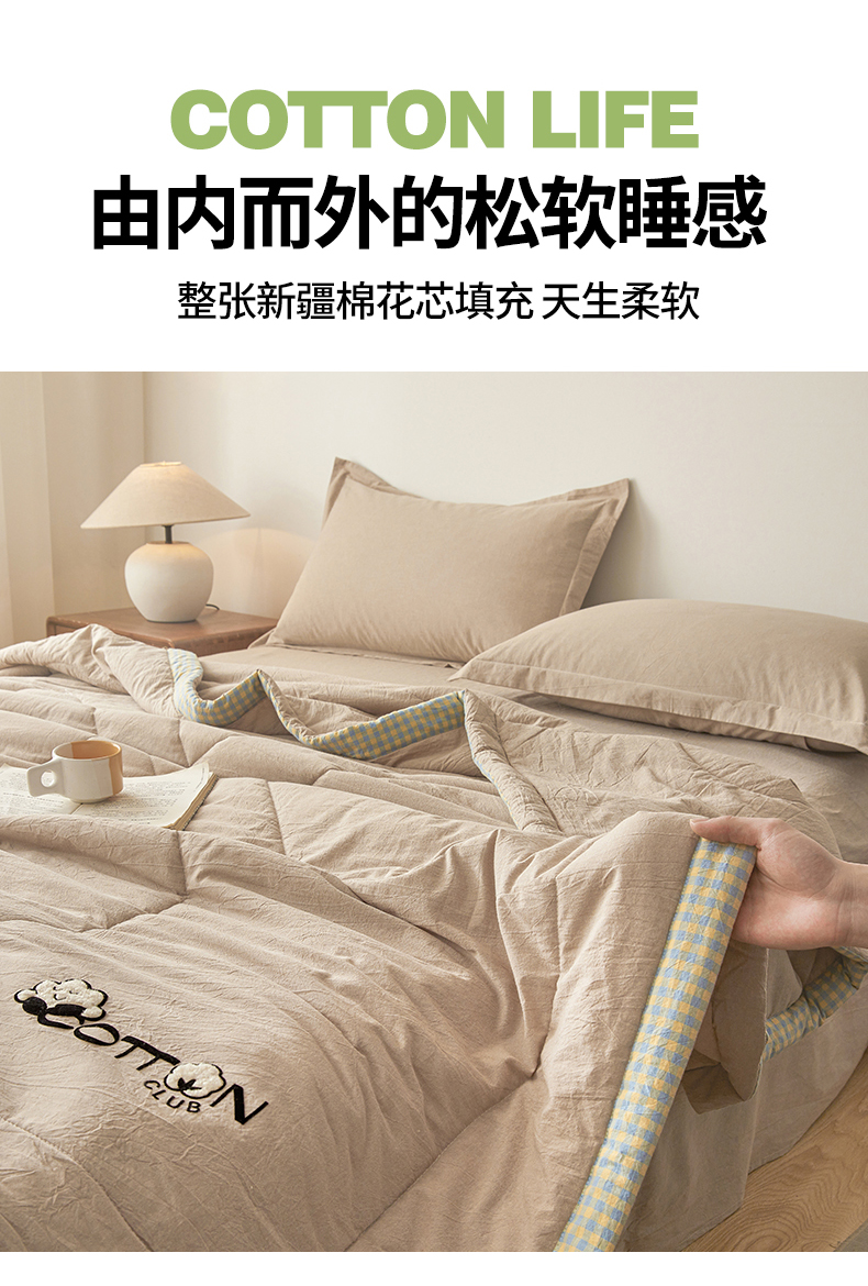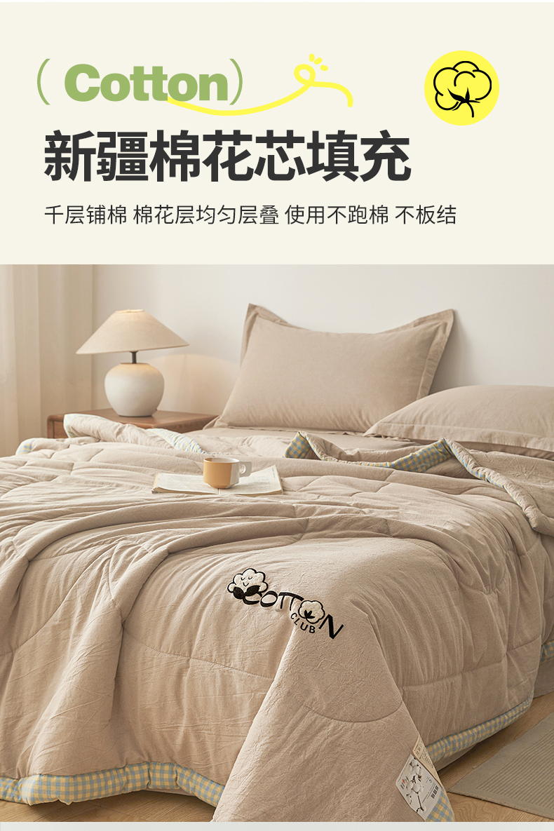 (总)西域种棉人 2026新款A类新疆棉花夏凉被加宽包边水洗棉无印格子印花吸湿透气棉花夏被空调被,格子灰,格子蓝,格子熊,格子紫,小格灰,小格绿