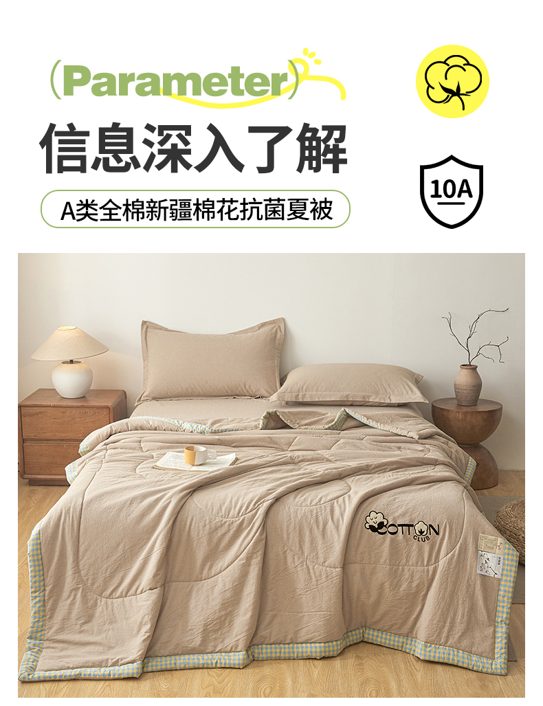 商品名称:2026新款A类里外全棉夏凉被100%新疆棉纯棉全棉填充烫画款空调被夏被 全棉烫画-沙漠咖