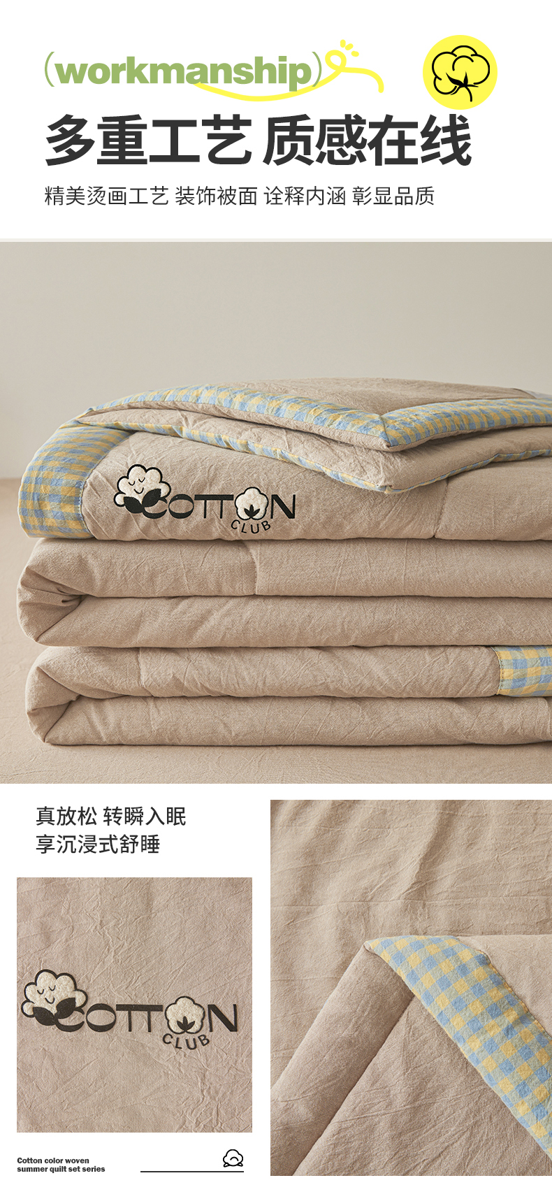 (总)西域种棉人 2026新款A类新疆棉花夏凉被加宽包边水洗棉泡泡纱吸湿透气棉花夏被空调被纯色烫画,泡芙-粉,泡芙-黄,泡芙-灰,泡芙-蓝,泡芙-绿,泡芙-驼,泡芙-紫