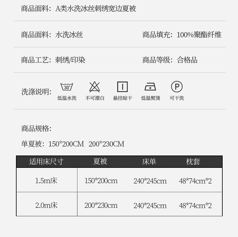 150x200cm单夏被+床单+枕套一对 | ¥75.00 |