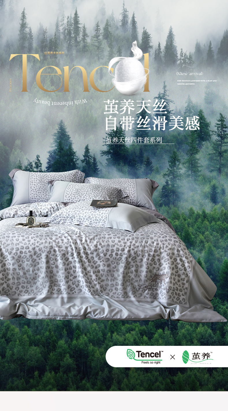 (总)金奇达家纺 2026新款茧养天丝棉四件套-【美罗拉】(标准号全网控价(折后券后)不低于 258元),斑尼灰,碧玉绿,南汐