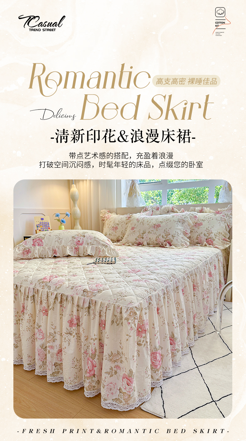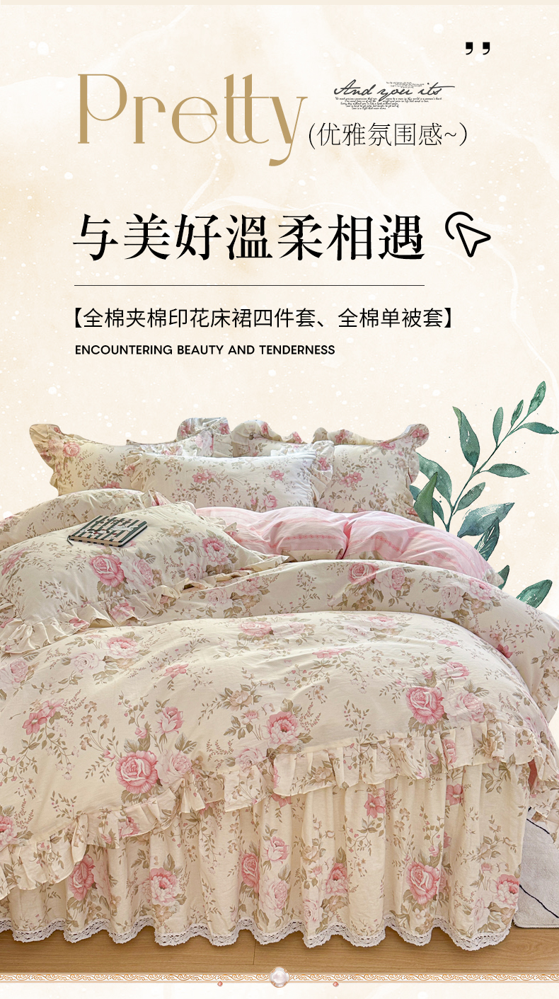 当前位置: 91家纺网 > 商品网购 > 床品套件 > 四件套 > 全棉普通四件套 > 忘忧草 2026新款全棉夹棉印花床裙四件套单被套 华庭庄园-米