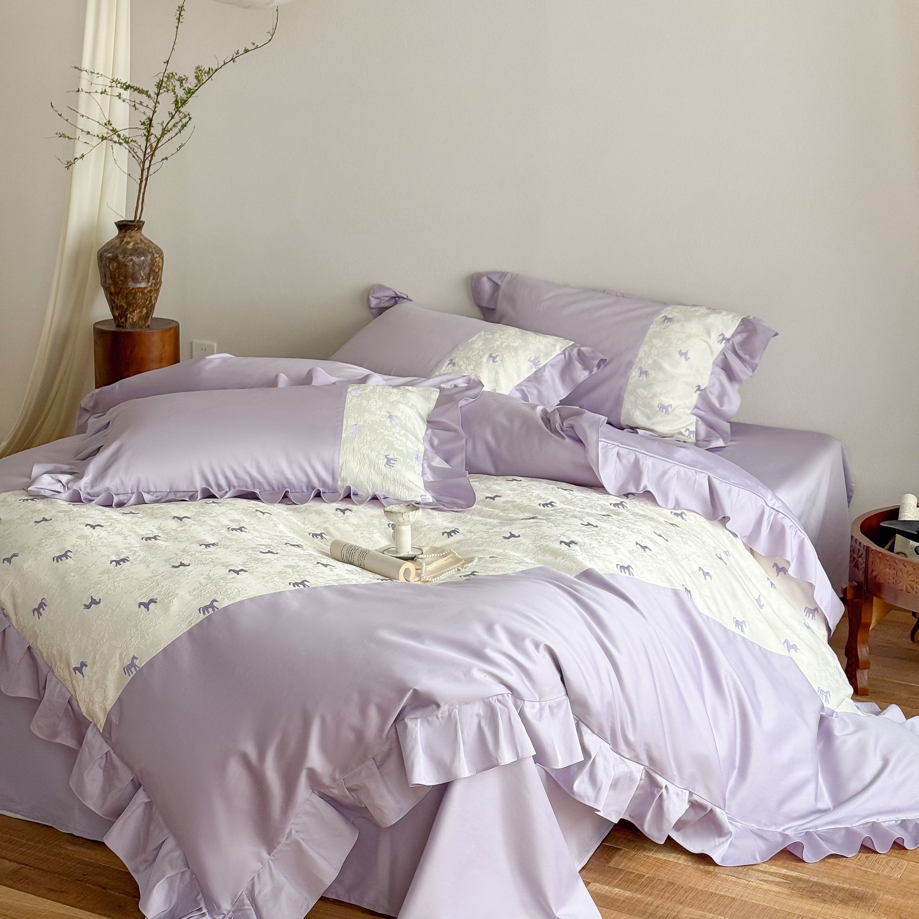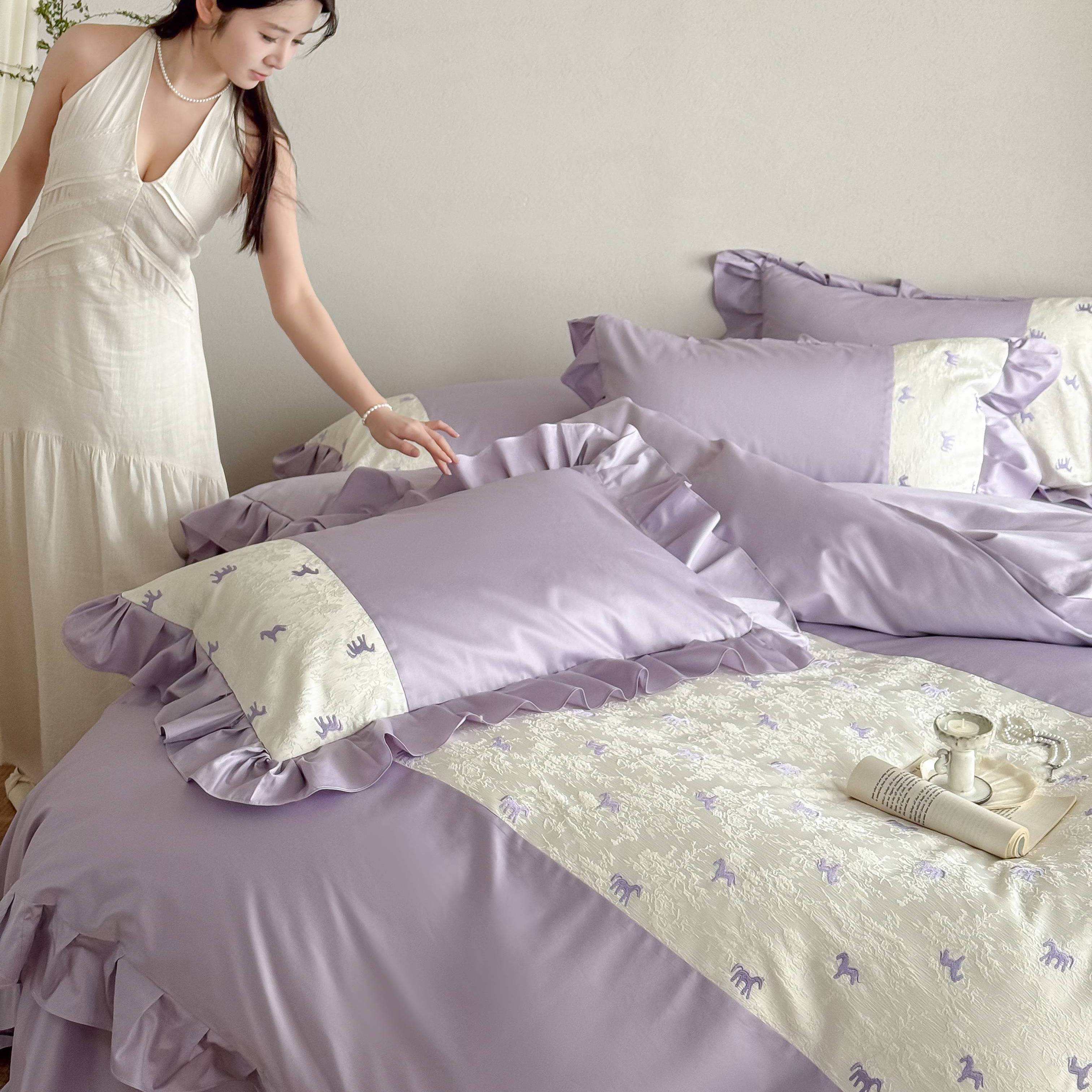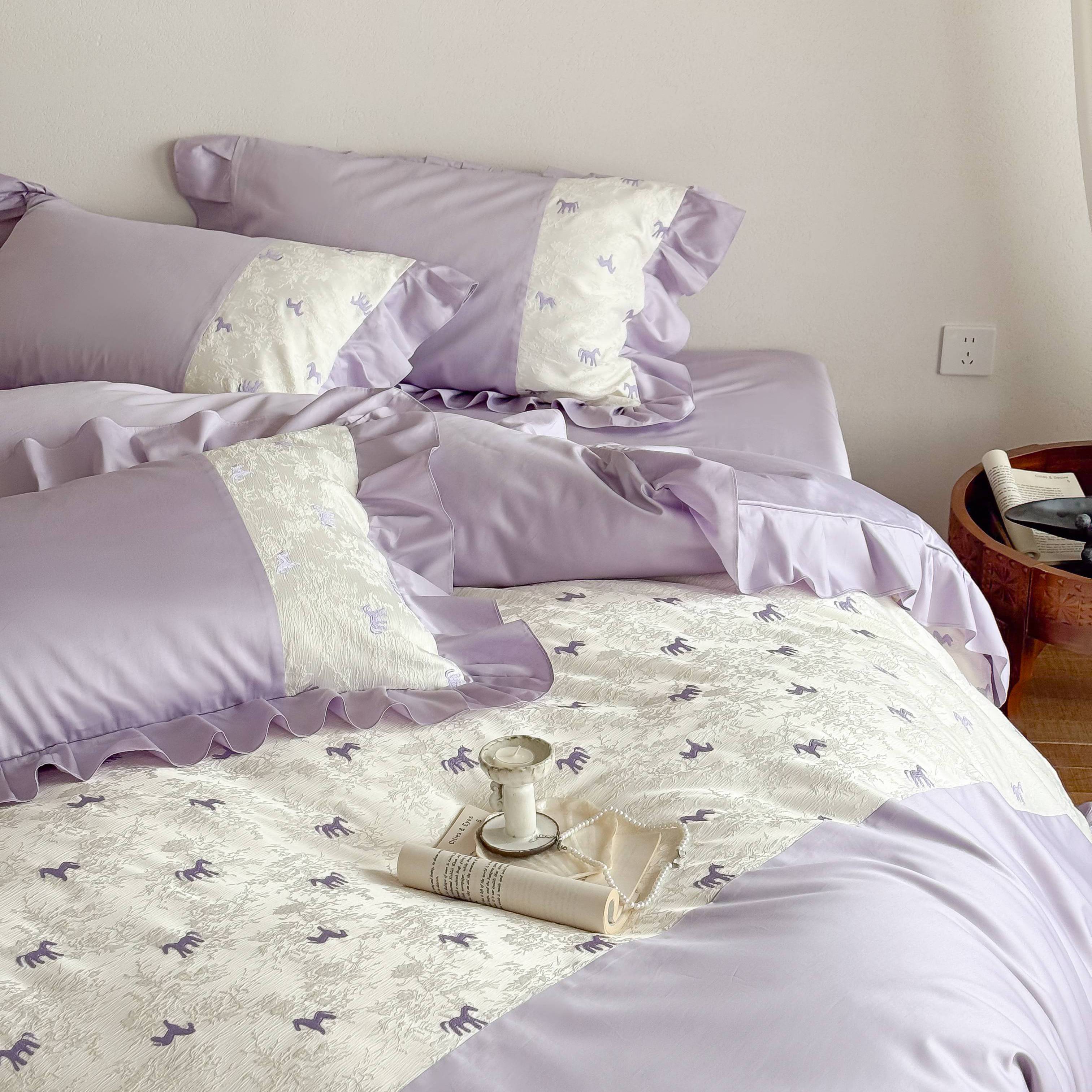 (总)西西家居 2026春夏新款100S长绒棉纯棉绣花四件套-以梦为马-紫(含精致红色礼盒)