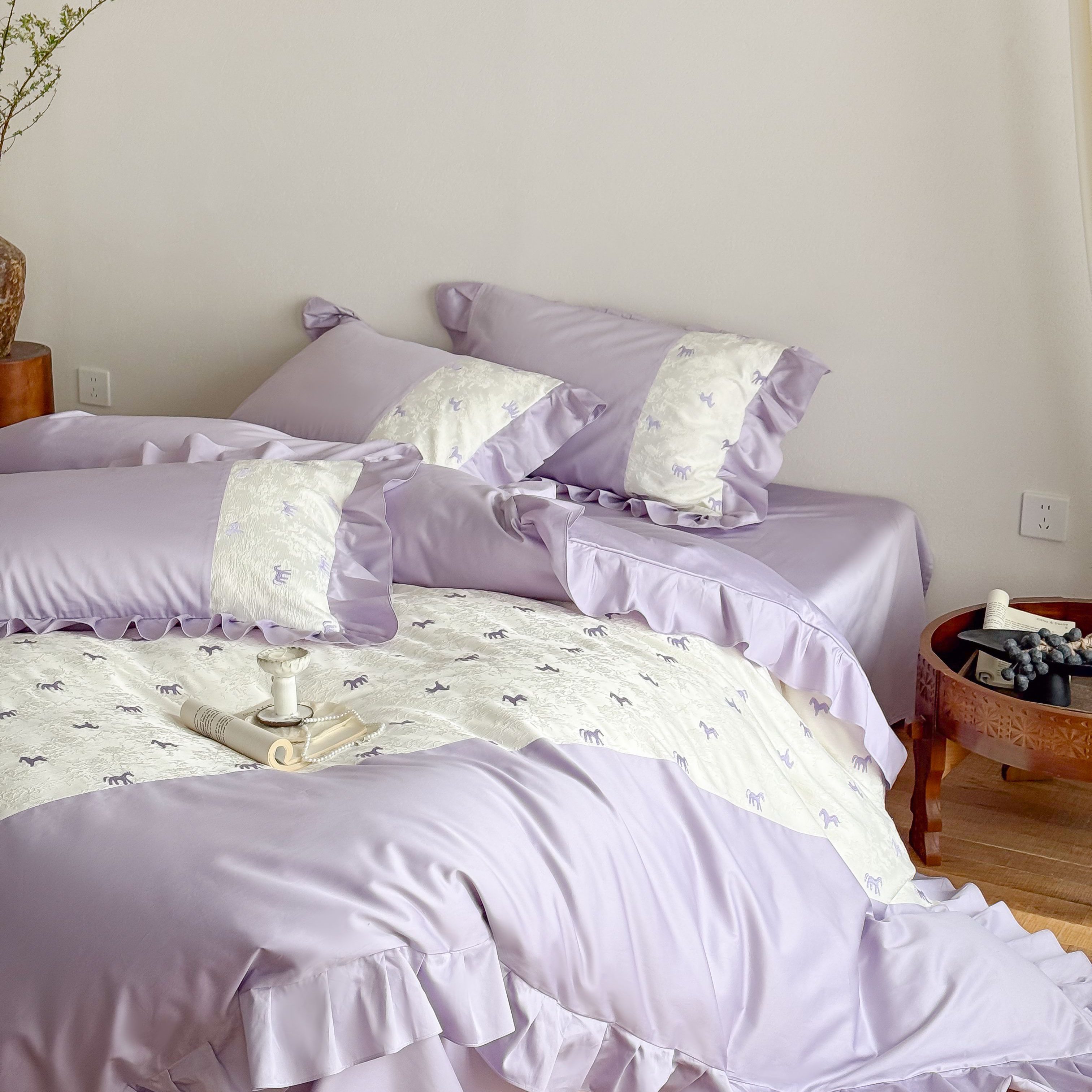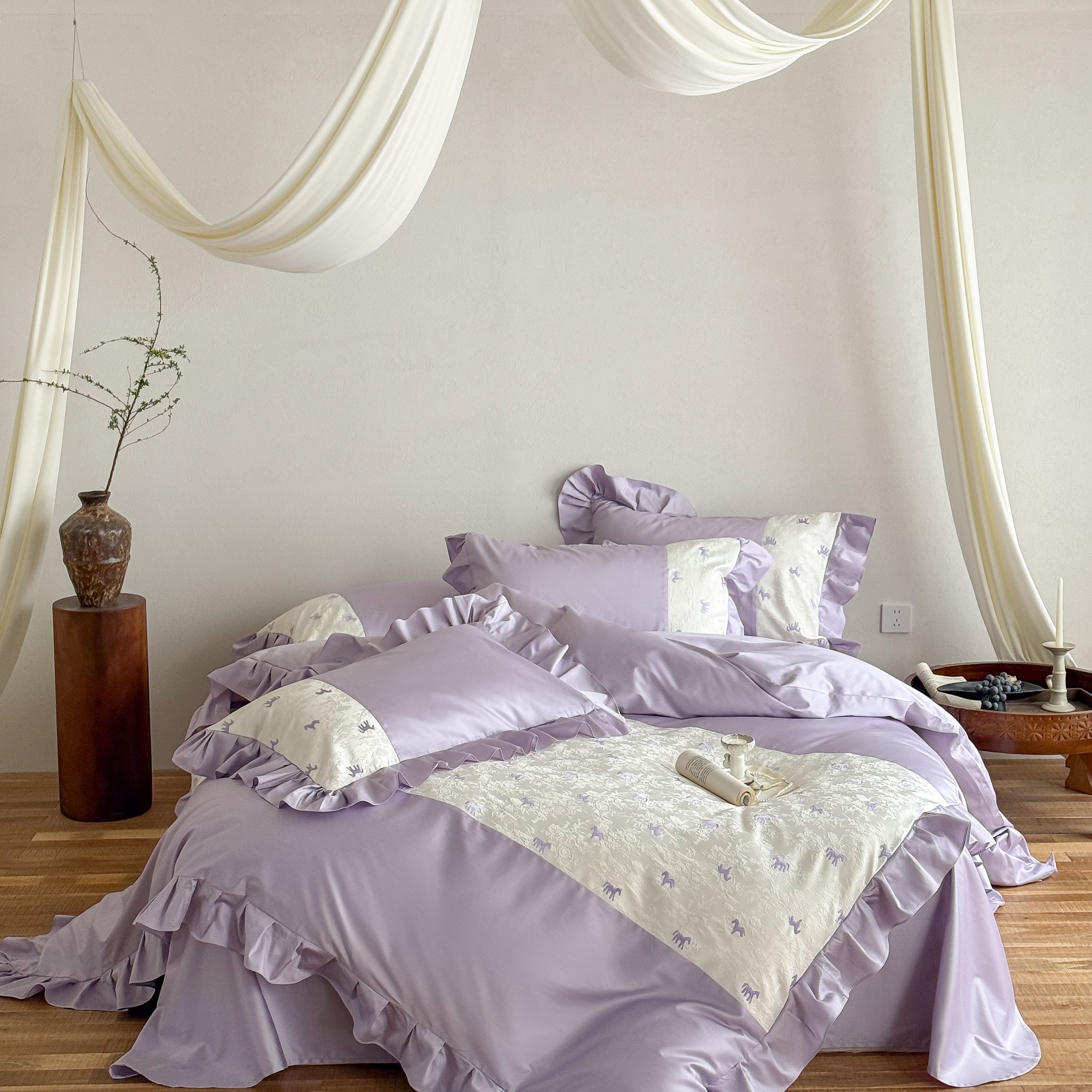 商品名称:(总)西西家居 2026春夏新款100S长绒棉纯棉绣花四件套-以梦为马-紫(含精致红色礼盒)