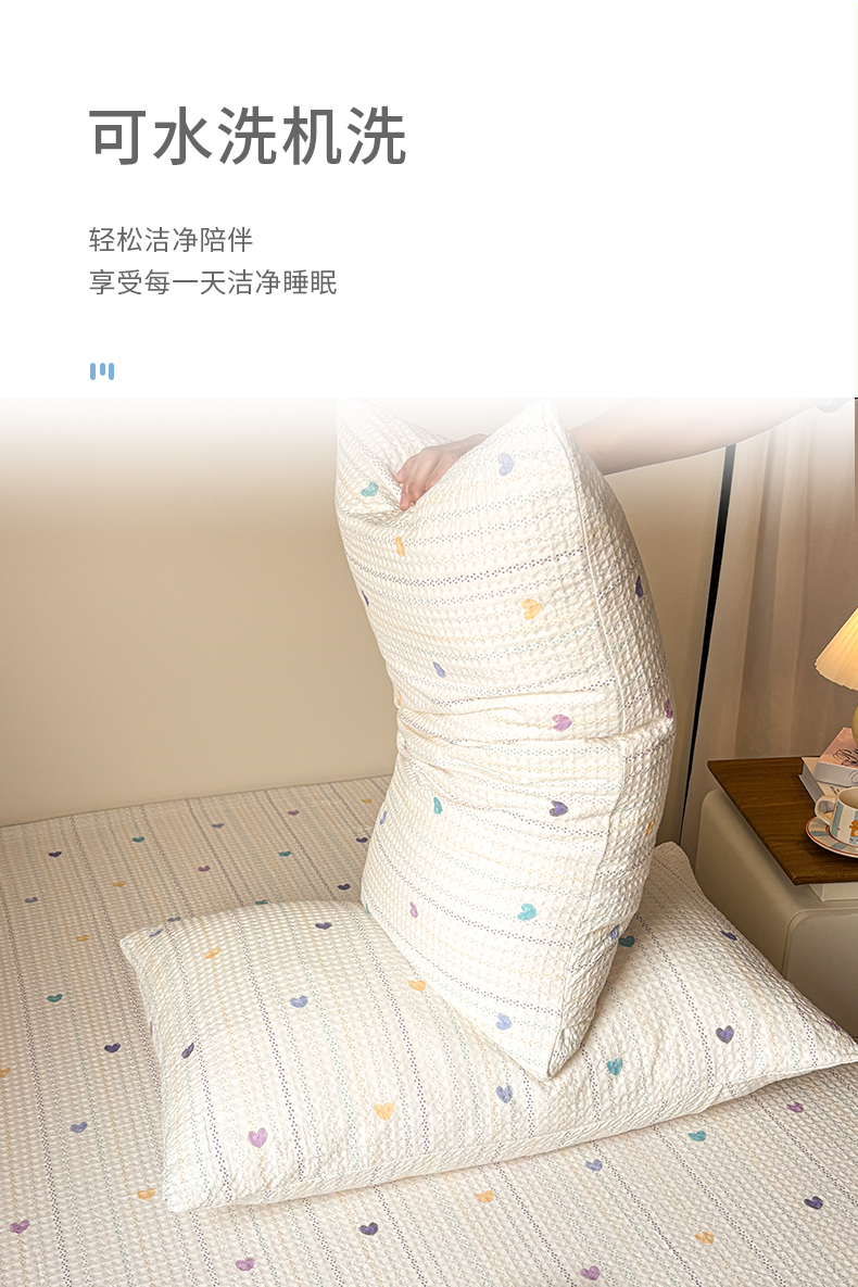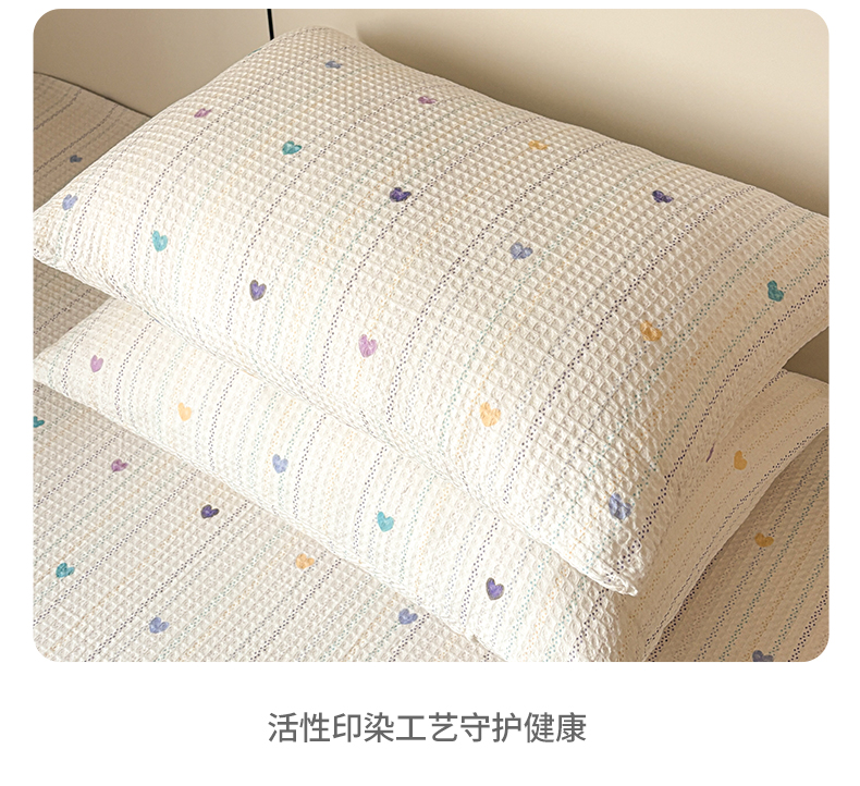 商品名称:居眠 2026新款全棉纯棉印花华夫格单枕套枕套单件 彩带条
