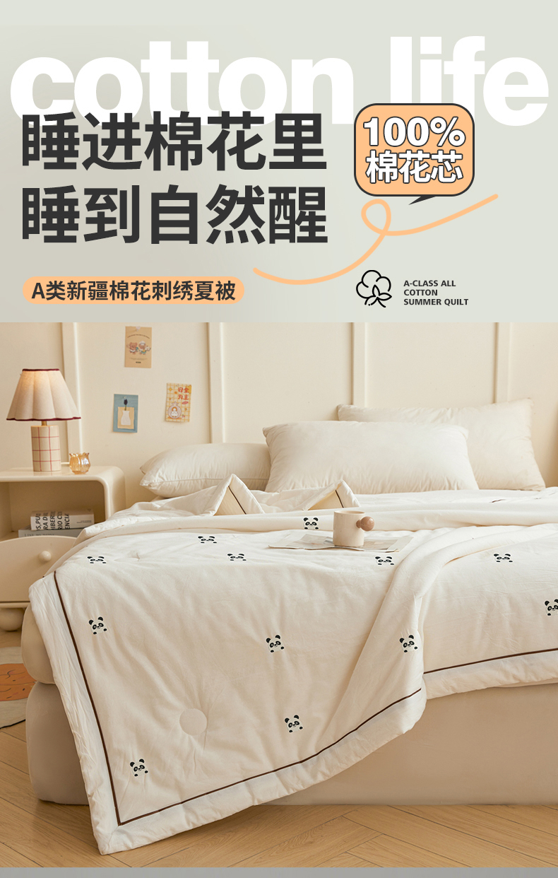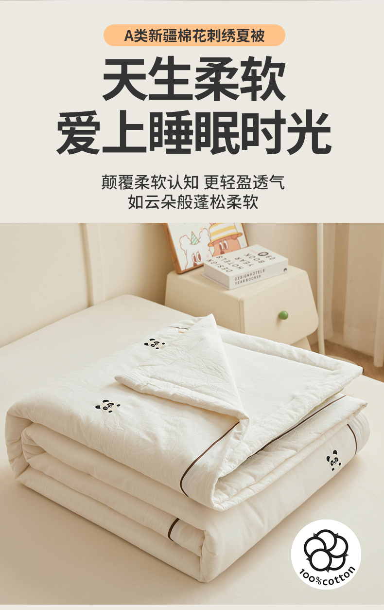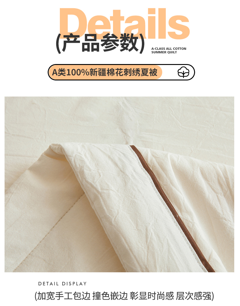 商品名称:(总)仁凯家纺 2026新款A类100%棉花刺绣款手包边夏被夏凉被空调被