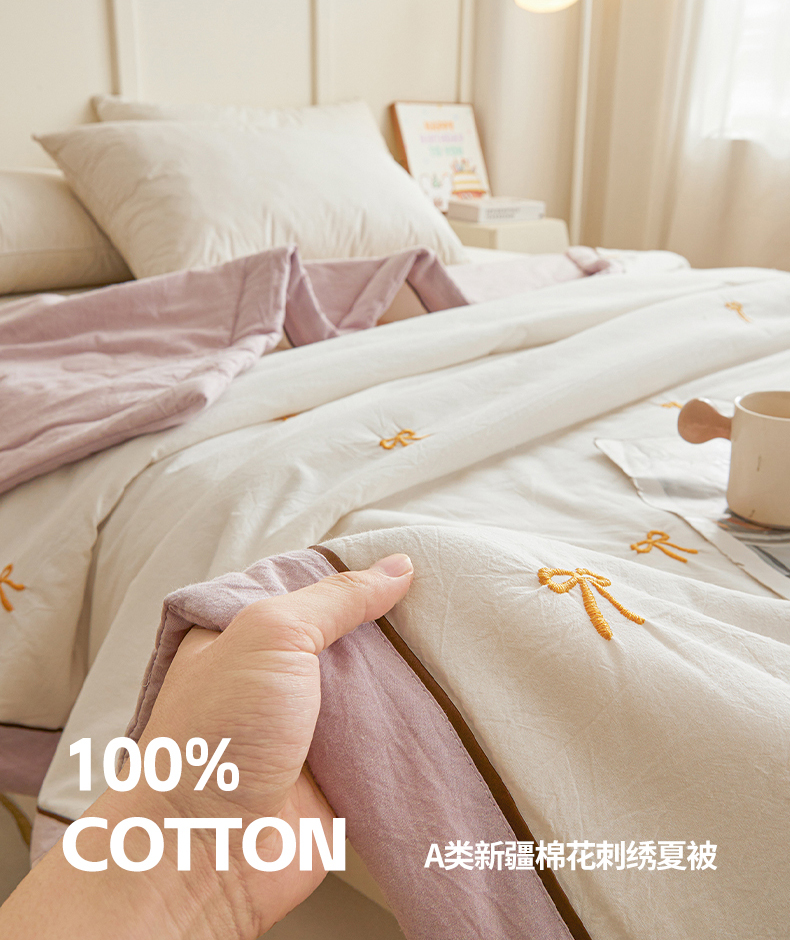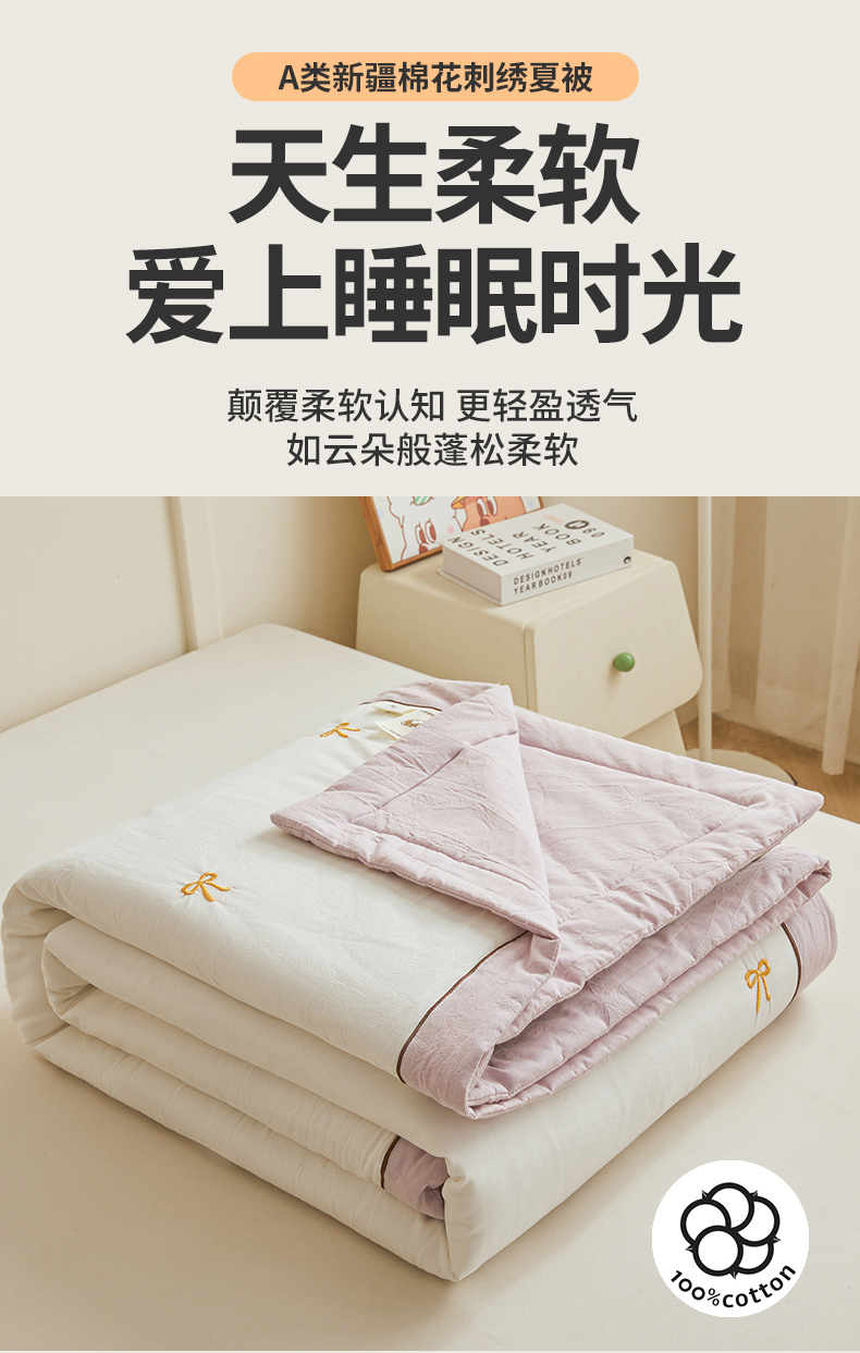 (总)仁凯家纺 2026新款A类100%棉花刺绣款手包边夏被夏凉被空调被