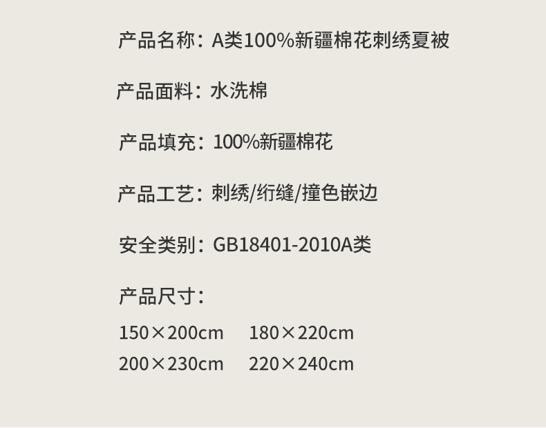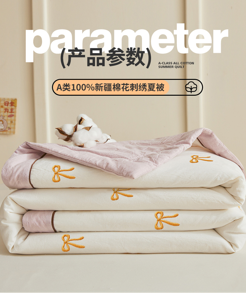 商品名称:(总)仁凯家纺 2026新款A类100%棉花刺绣款手包边夏被夏凉被空调被