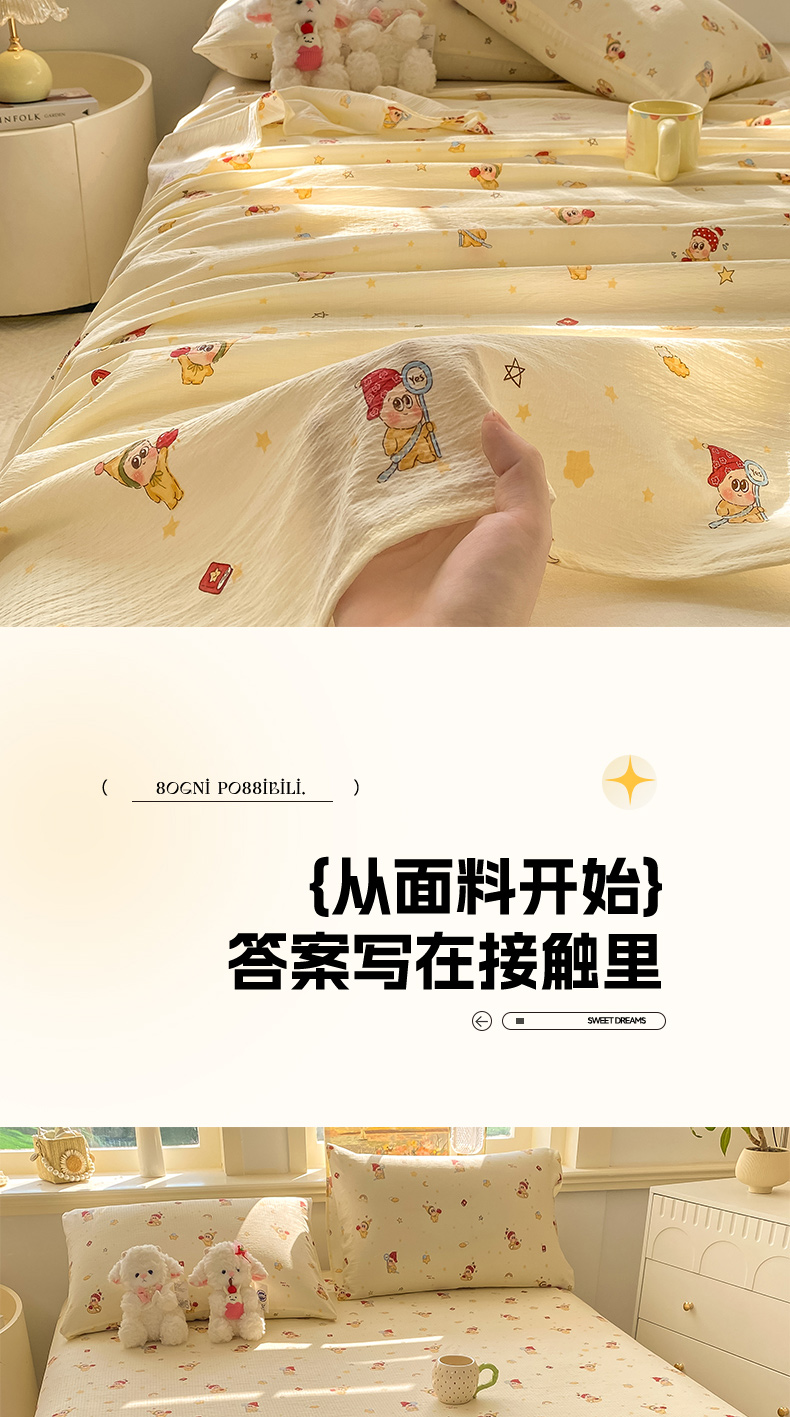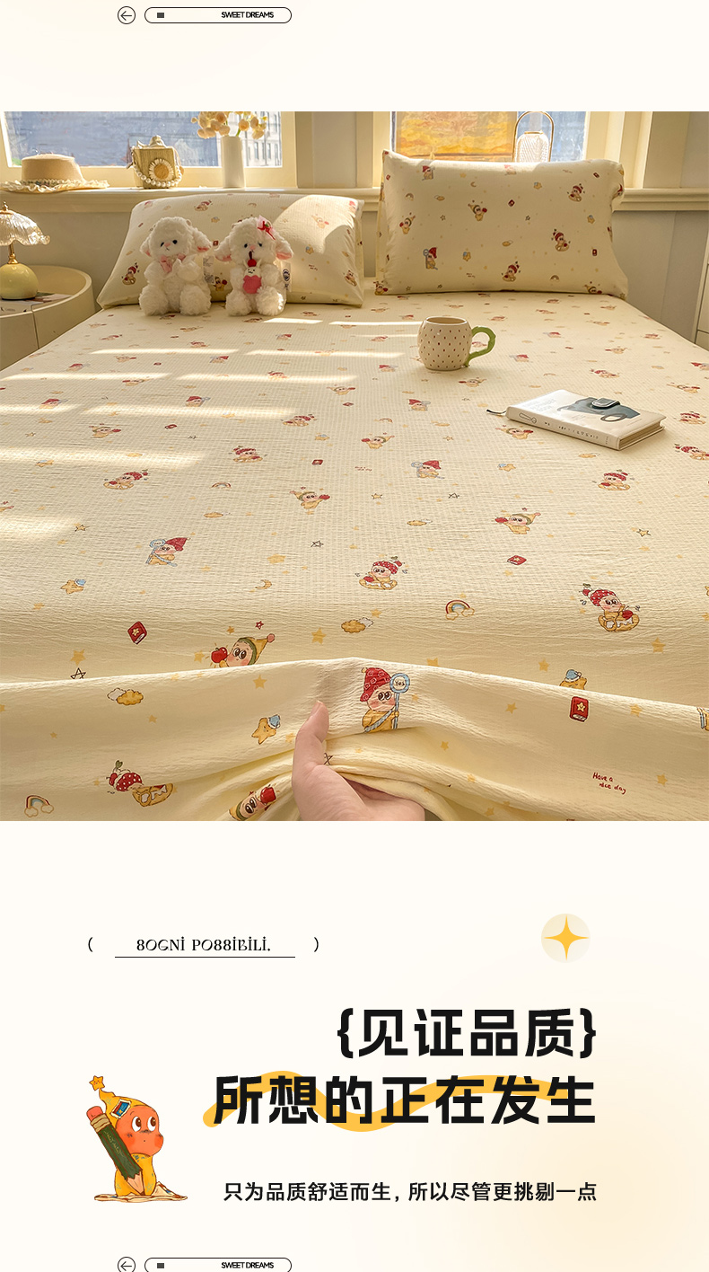 (总)晓时候 2026新款A类云感双层纱床单三件套单品单件床单,安然入夏,缤纷水果,冰川灰,豆蔻,多彩波点,繁花,蝴蝶结-紫,花间兔,蓝色泡芙狗,洛神花间,萌宠派对,萌萌星星人,奶芙狗,柠檬黄,芊芊花语,牵牛紫,俏皮狗,青春蓝,青竹绿,甜甜西高地,甜心女孩,小确幸,星星喵,樱花粉,云朵白