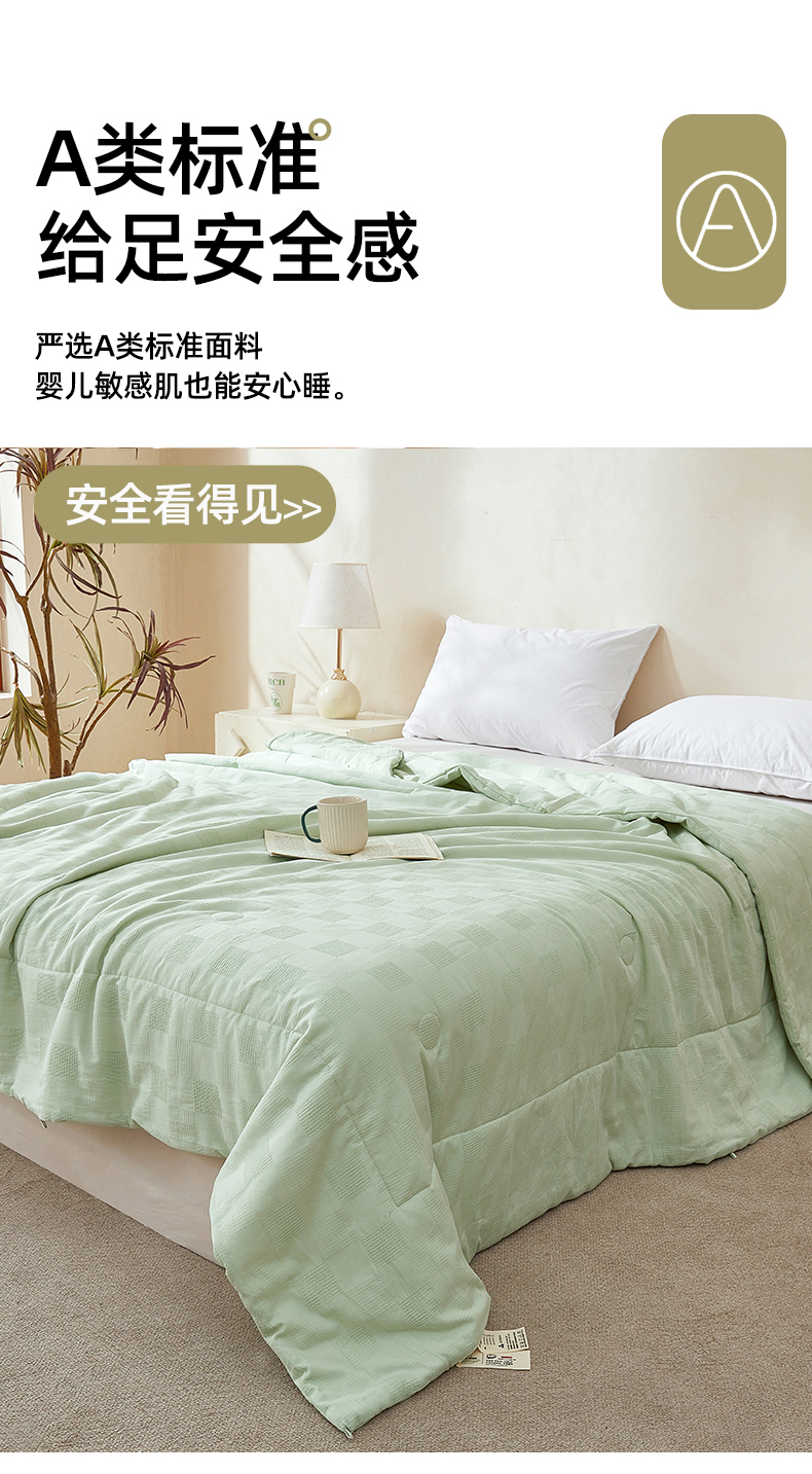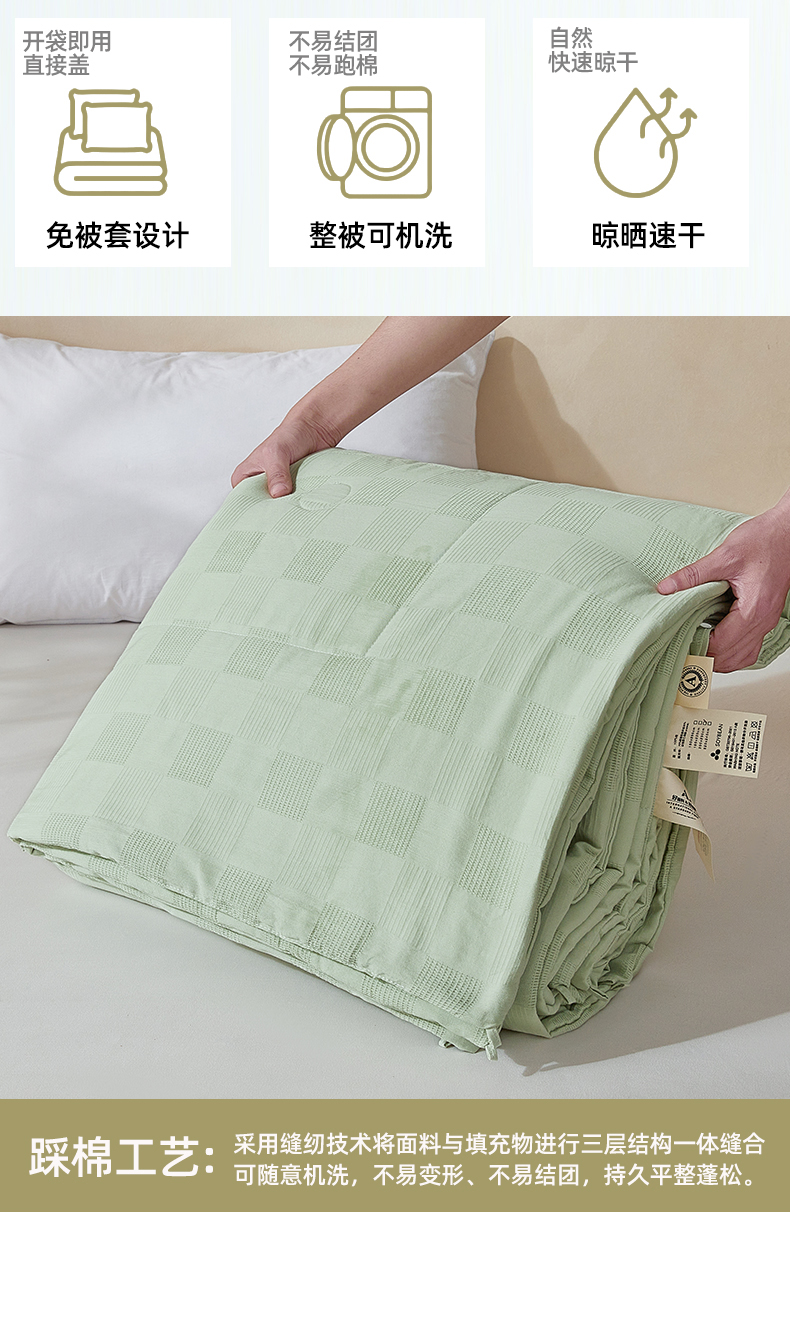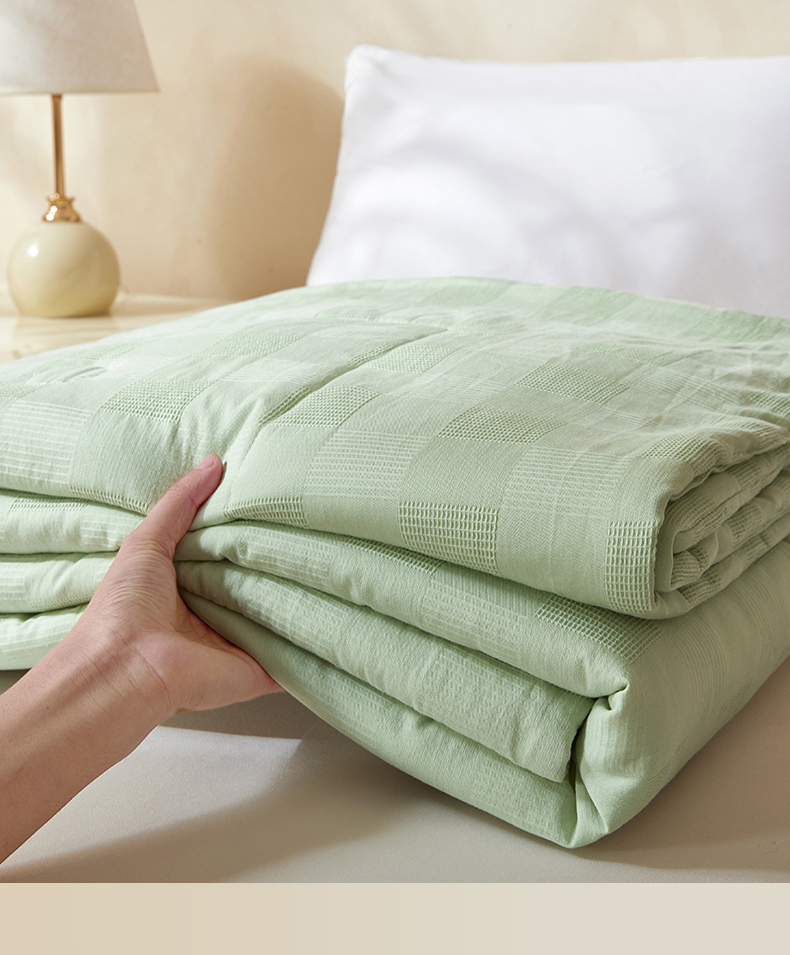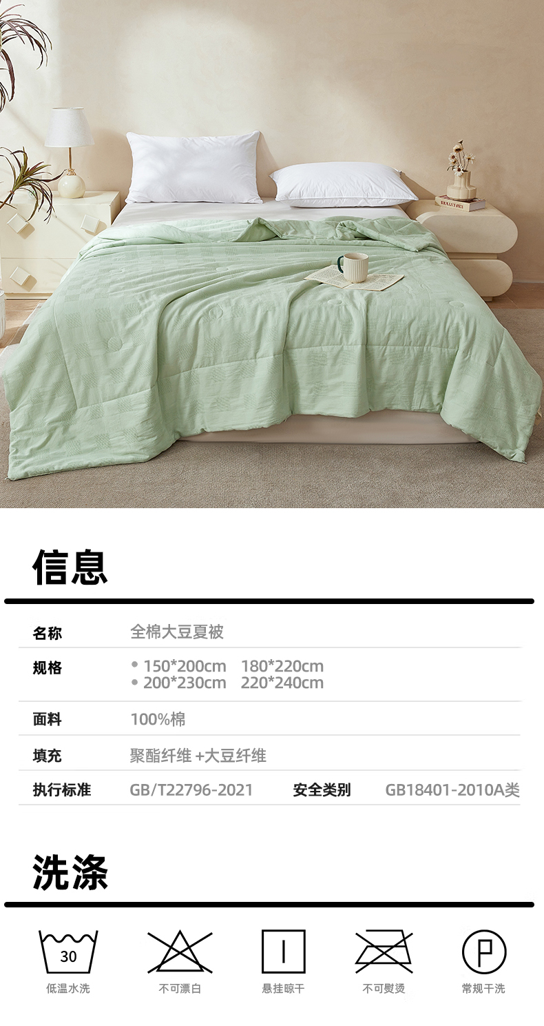商品名称:阳光被业 2026新款100%纯棉大提花夏凉被大豆空调被 全棉春秋被学生棉被 浅草绿