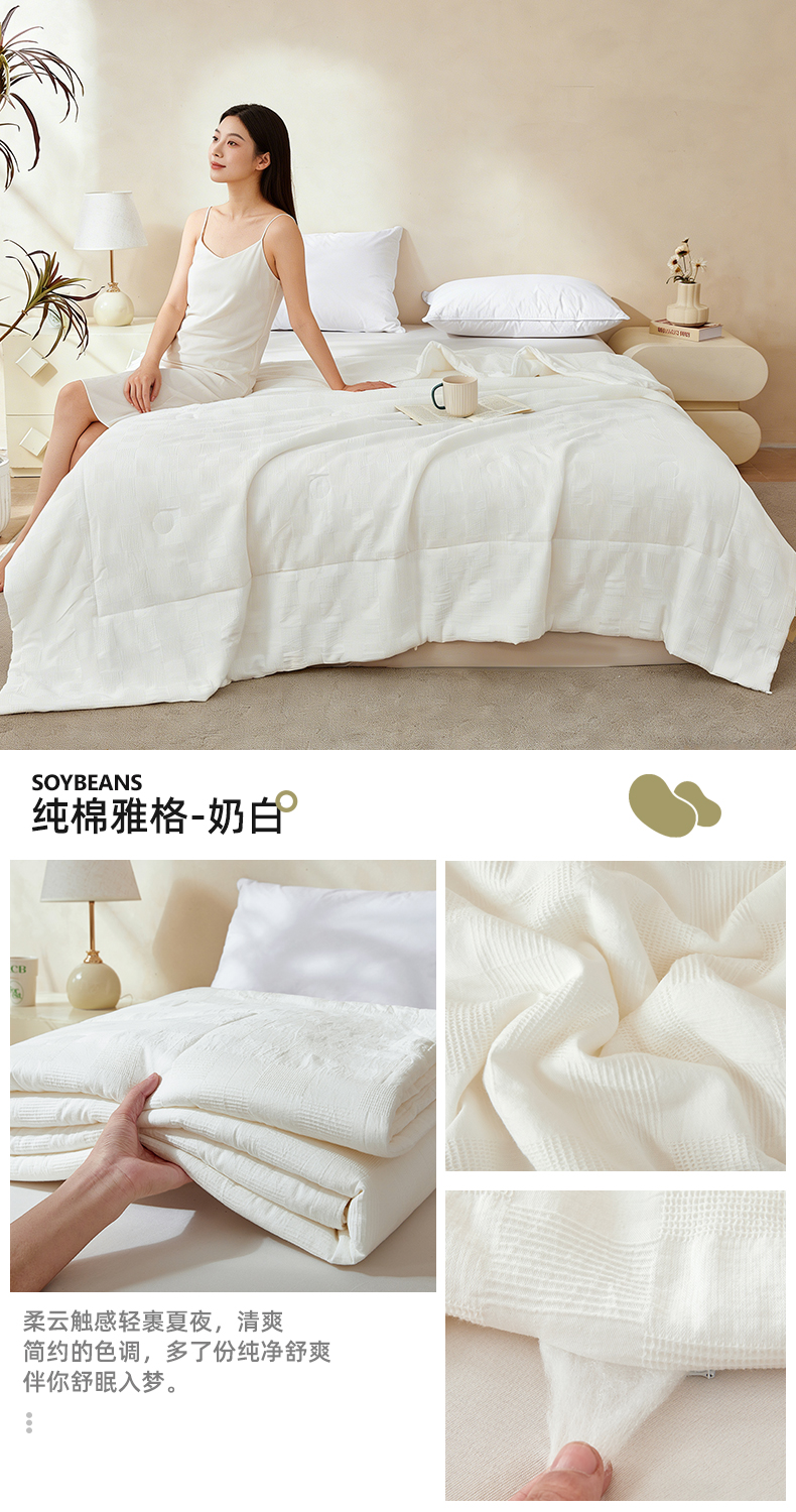 (总)阳光被业 2024新款A类全棉提花大豆被,白色