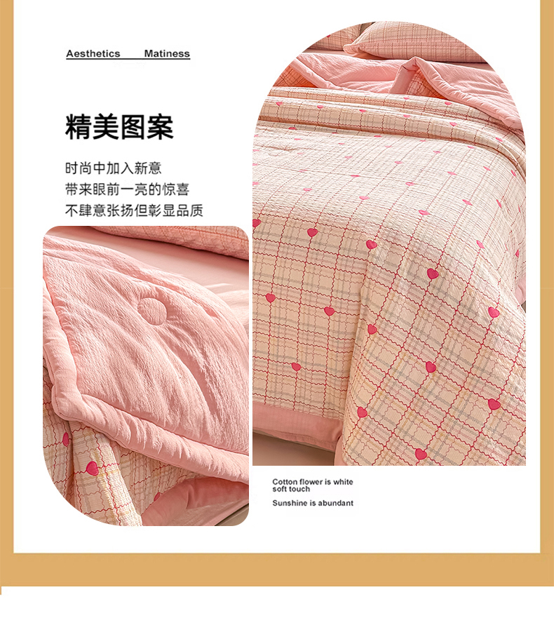(总)家喜爱 2026年新款双层皱皱纱新疆棉花夏被夏凉被空调被【可开专票 普票】,格格心,海盐蝴蝶结,黄色小碎花,绿野迷踪,萌萌星星人,墨夏凉花,蔷薇语,素描花,童年摇梦,樱桃碎碎念,春日樱桃园,璀璨小狗,蛋糕派,粉豹纹Kitty