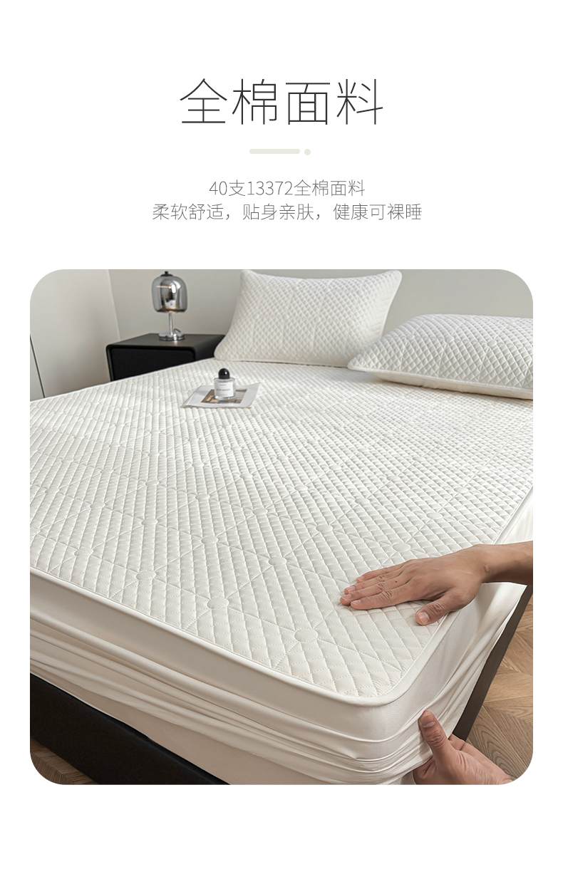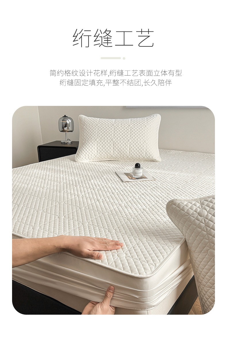 (总)居眠 2025新款防水夹棉床笠-清雅,清雅-粉色,清雅-灰色,清雅-卡其,清雅-绿色,清雅-米白,清雅-深蓝