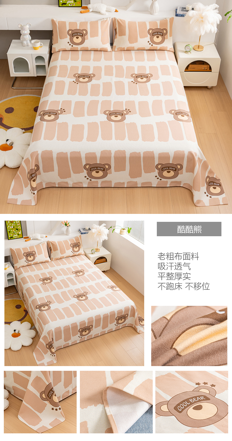 (总)居美良品 2026新款加厚215克老粗布床单卡通花卉可做凉席二三件套,竹趣,爱心花朵,朵朵兔,花园熊,滑板狗,酷酷熊,绿意盎然,莓影缤纷,萌宠乐园,诗意花坊,恬静,童梦乐园,熊猫宝贝,绚丽,幽雅,组合叠拍图仅展示不可下单