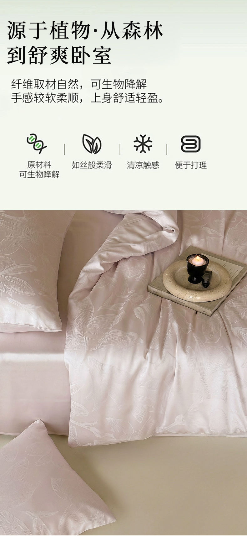 当前位置: 91家纺网 > 商品网购 > 床品套件 > 四件套 > 莱赛尔四件套 > FORTWO家纺原创设计(FOR TWO家纺) 2026春夏新款60支兰精天丝浮雕提花四件套([活动报名最低控价(基础价)]具体如下:小号278,中号358,大号398 床笠+10元) 拾花入梦
