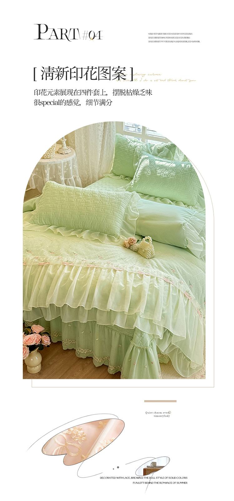(总)苏米娜家纺2026春夏新款活性印花ins风小碎花软糯水洗棉床盖款四件套全棉纯棉花边款被套,春田绿 ,紫韵,兰黛 , 奶酪芝士 ,莫奈-粉