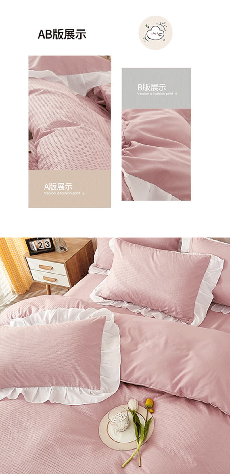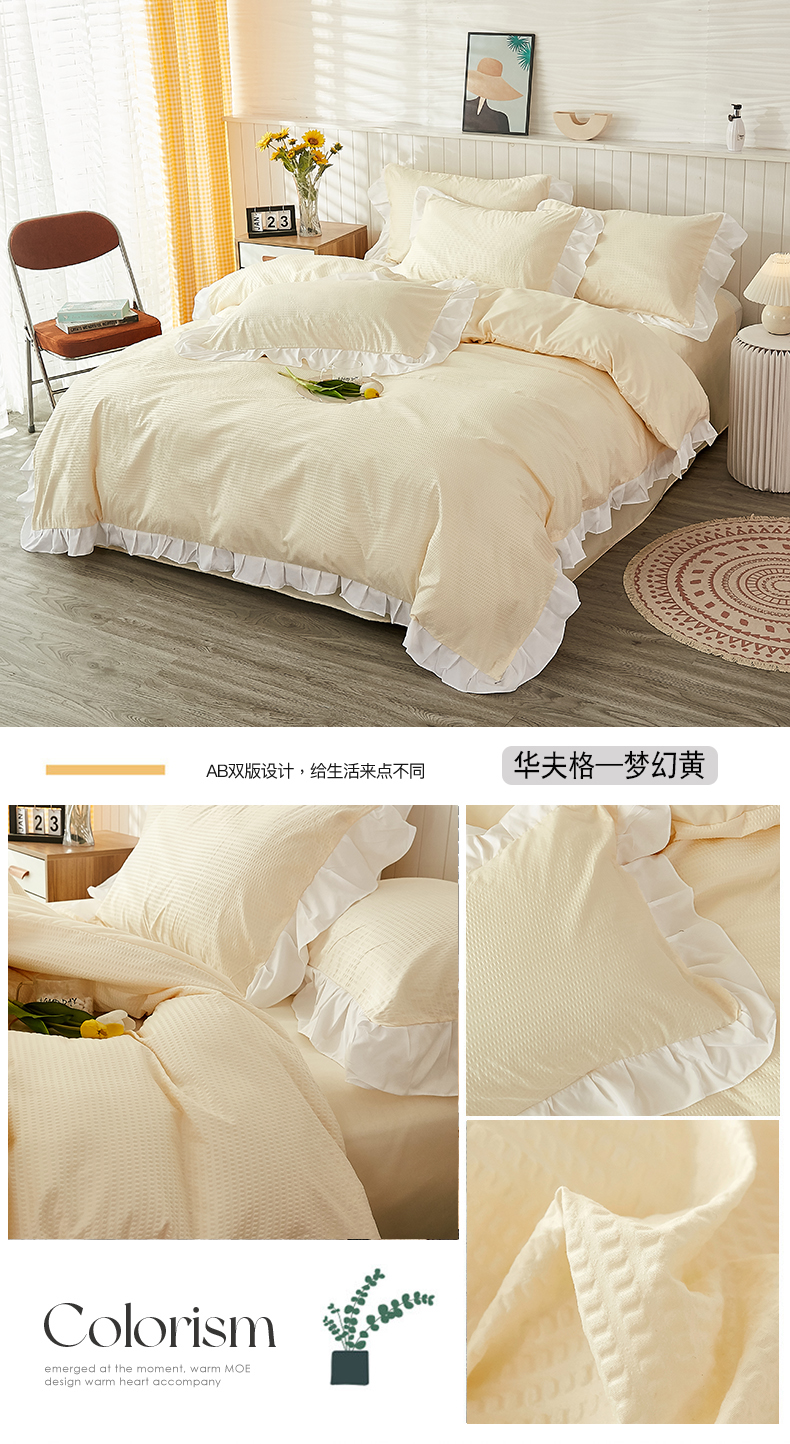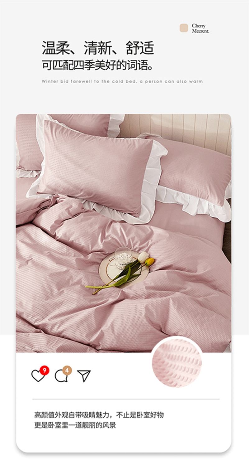 当前位置: 91家纺网 > 商品网购 > 床品套件 > 四件套 > 其它四件套 > 啊雅家居 2026新款轻奢韩式花边华夫格四件套 梦幻粉
