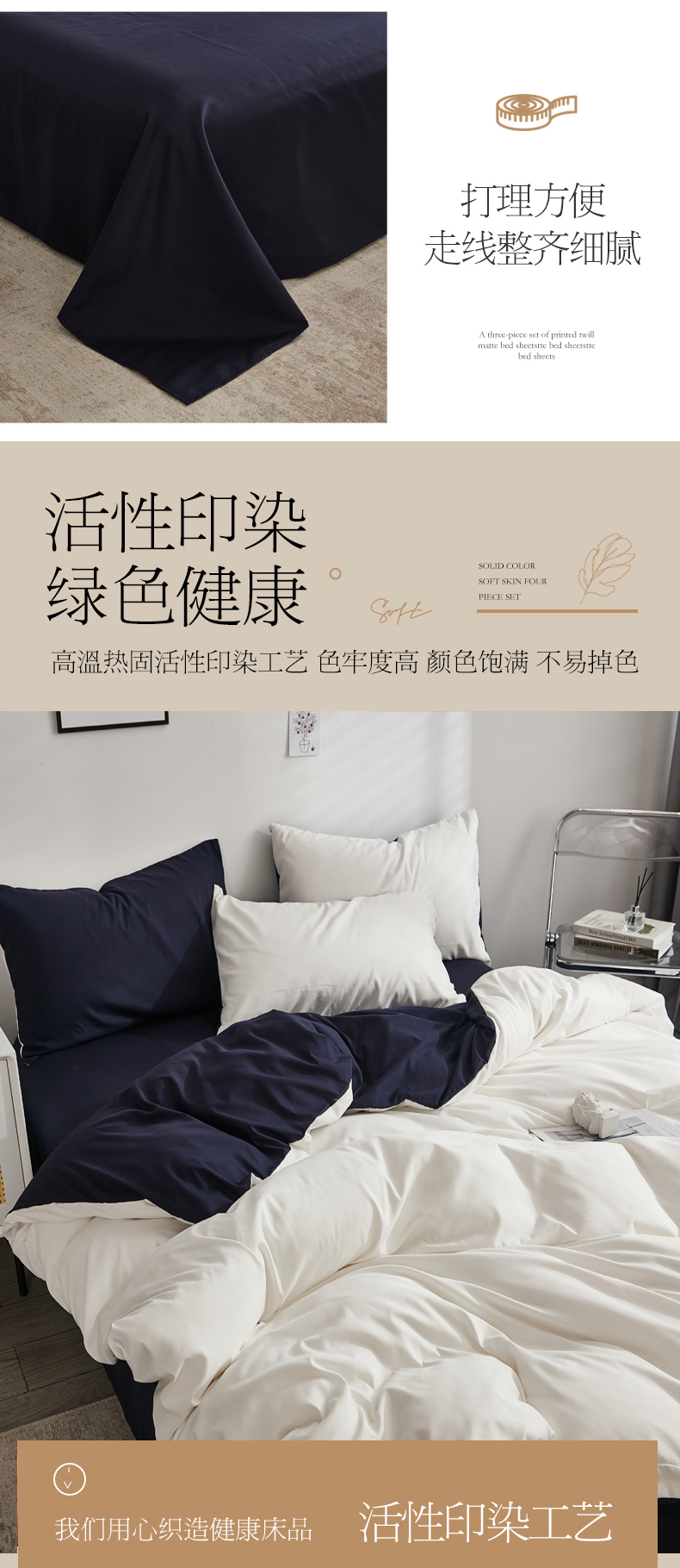 (总)啊雅家居 2025新款ins简约学生宿舍双拼纯色磨毛四件套可订制logo,白加藏青,白色,草绿,红色,克莱因蓝加浅蓝灰,米白加深灰,浅灰加深灰,浅灰,深灰,天空兰加黄,天空兰加浅灰,天空兰