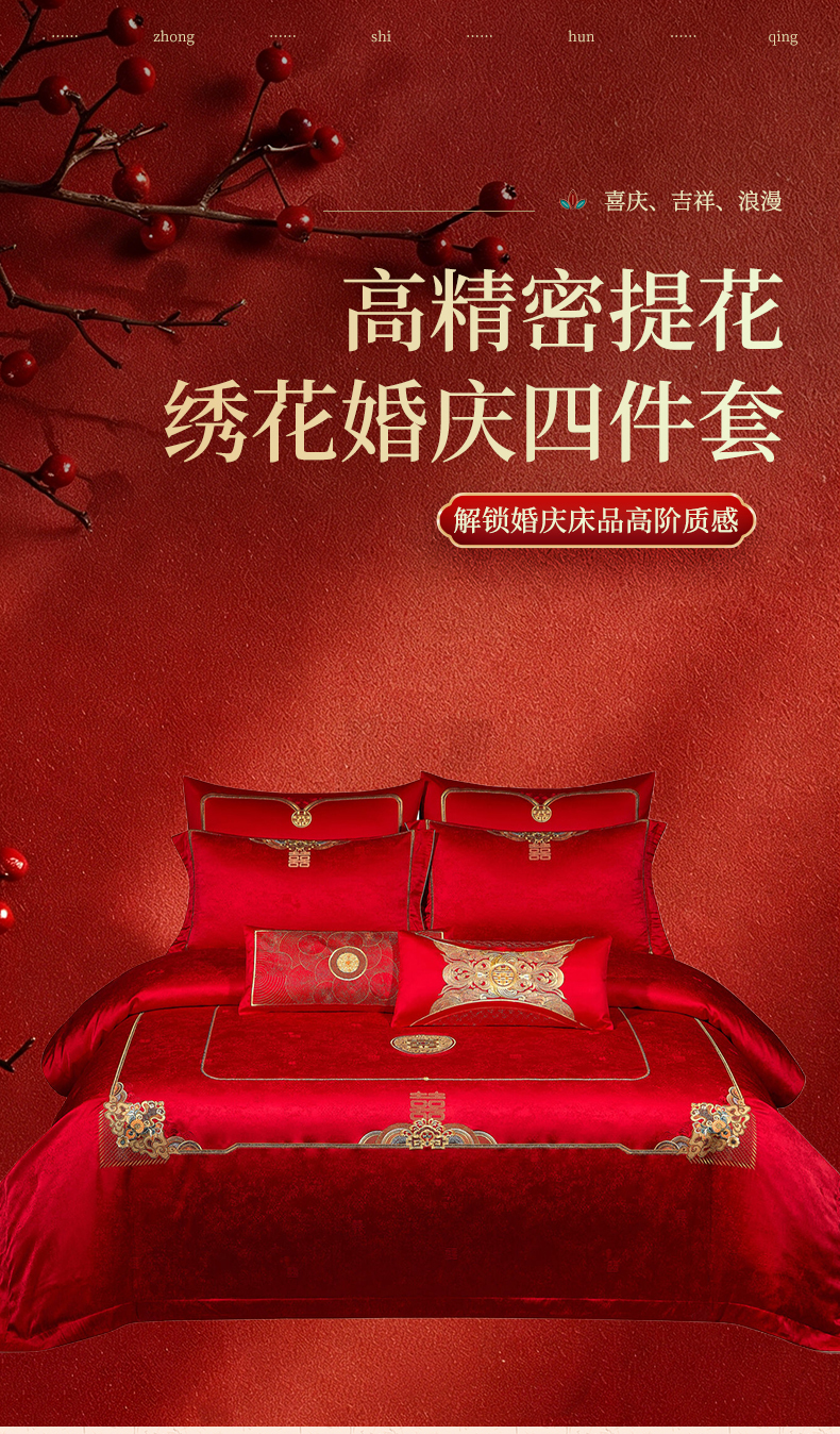 (总)婚庆四件套高精密提花加刺绣结婚喜庆直播爆款【控价不低于580】