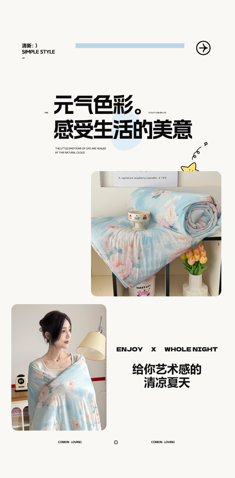 (总)默忆 2026新款凉感丝印花大豆纤维夏被空调被夏凉被,彩虹布布,彩蝶漫舞,国色天香,玫瑰兔,墨韵,浓情蜜意绿,轻风细语,兔公主,意境迷人,玉兰谷