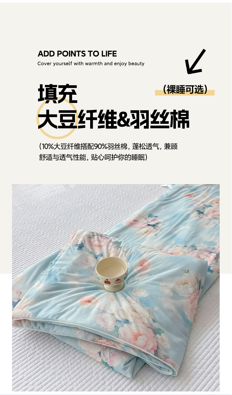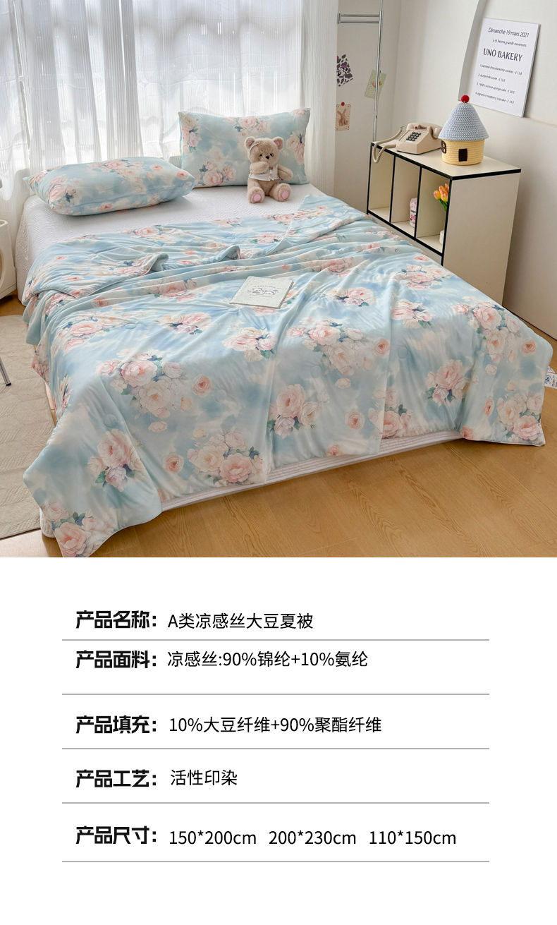 商品名称:默忆 2026新款凉感丝印花大豆纤维夏被空调被夏凉被 轻风细语