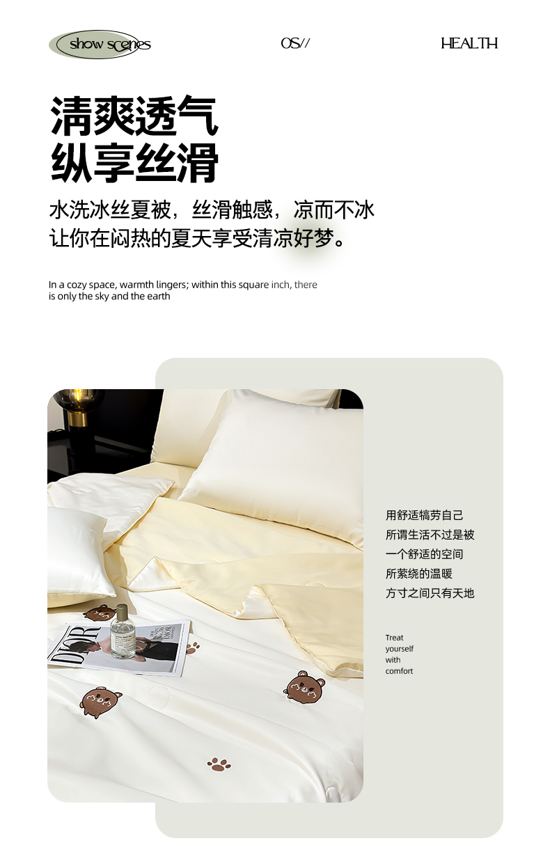 (总)憨豆家纺 2026新款水洗冰丝夏被四件套(升级抗菌棉)水洗真丝绣花系列夏凉被跨境外贸空调被,小兔-奶黄绿,小兔-奶白粉,小熊猫-奶白绿,小熊猫-水果奶黄,小熊-奶白黄,小熊-奶黄绿,小熊-梧桐灰,蝴蝶结-奶黄绿,蝴蝶结-梧桐灰,花朵-奶白粉,花朵-奶白蓝,腊肠狗-奶白粉,腊肠狗-奶白蓝,腊肠狗-梧桐灰,四叶草-奶白绿,四叶草-水果奶黄