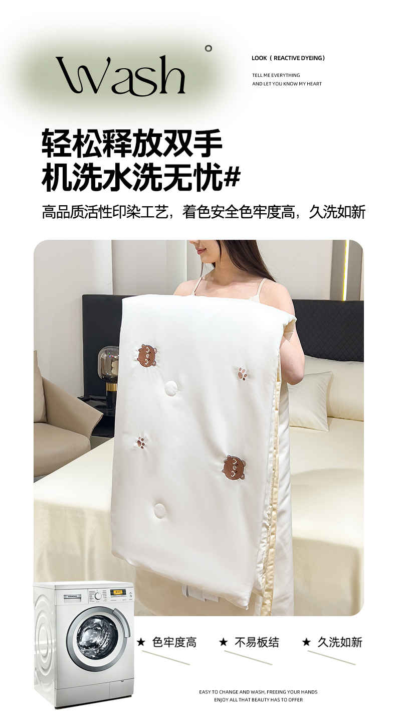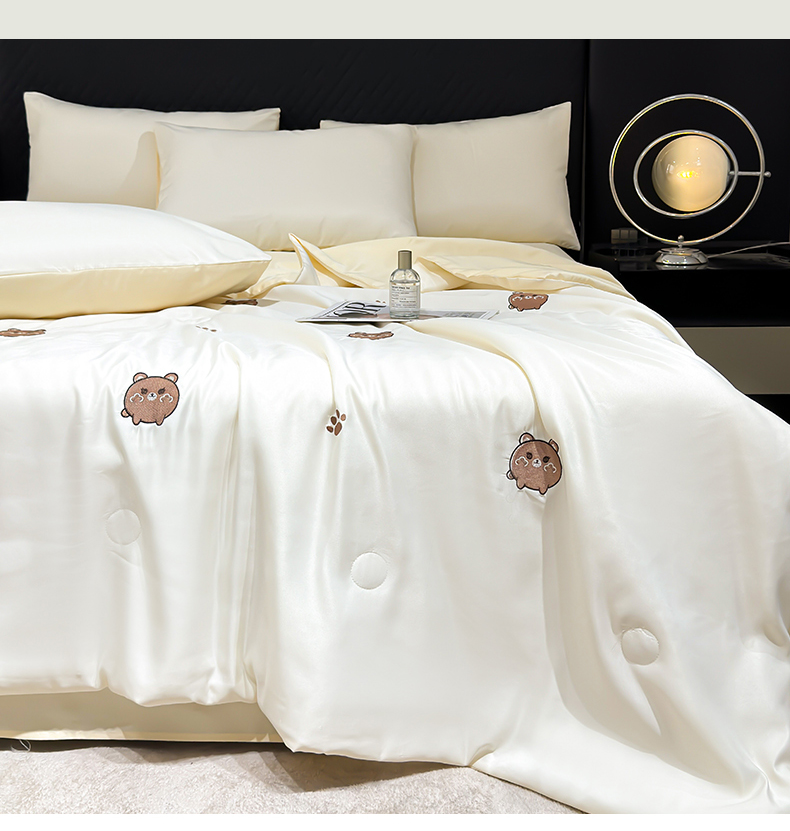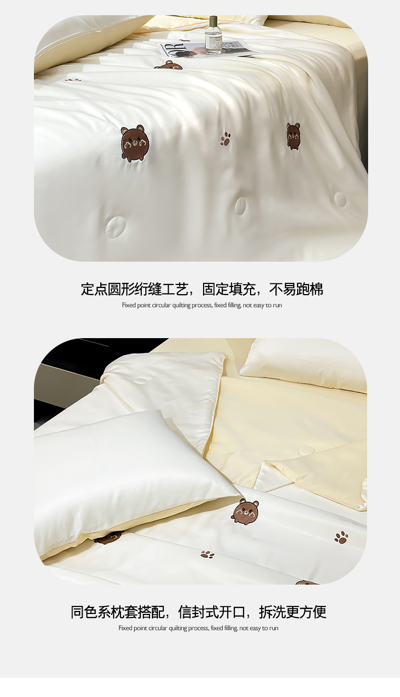 • 91家纺网 家纺一手货源 找家纺 憨豆家纺 2026新款刺绣水洗冰丝夏被四件套星球水洗真丝夏凉被(含抗菌棉)跨境外贸床笠款空 小熊-奶白黄