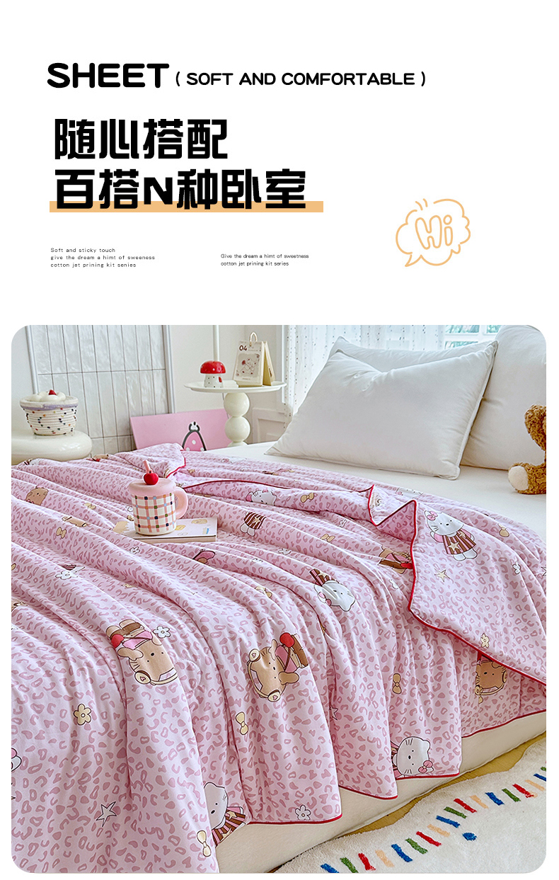 (总)宜家坊 2026新款金豆豆床盖A类针织棉印花大版卡通床盖三四件套,鸿运当头,大头贴,粉熊和小鳄,花仙子,可爱小熊,马内多多粉,兔乖乖,兔兔和狗,旺旺人生,小虎鲸,幸运星星,要嘛有马