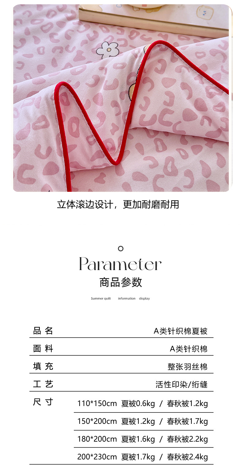 • 91家纺网 家纺一手货源 找家纺 宜家坊 2026新款A类针织棉嘟嘟被夏被春秋被空调被儿童学生被子被芯 粉粉豹纹猫