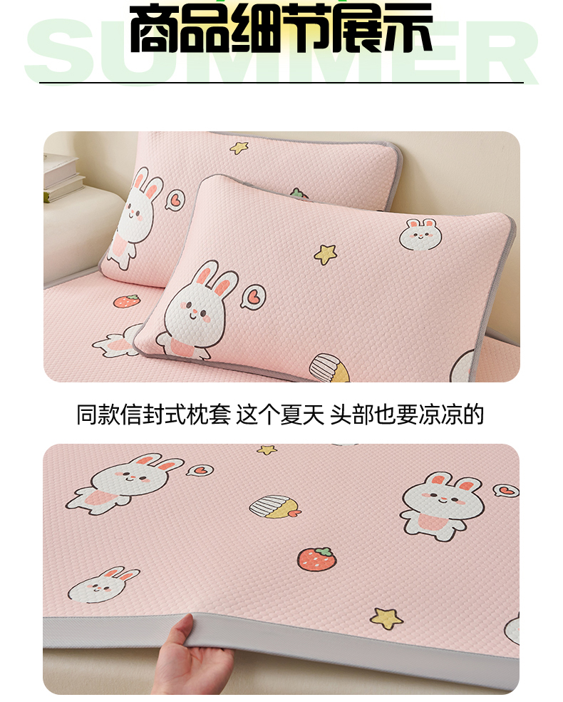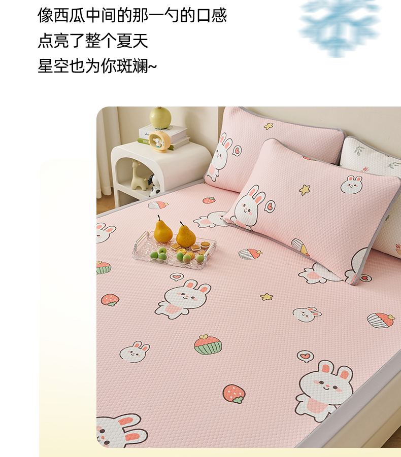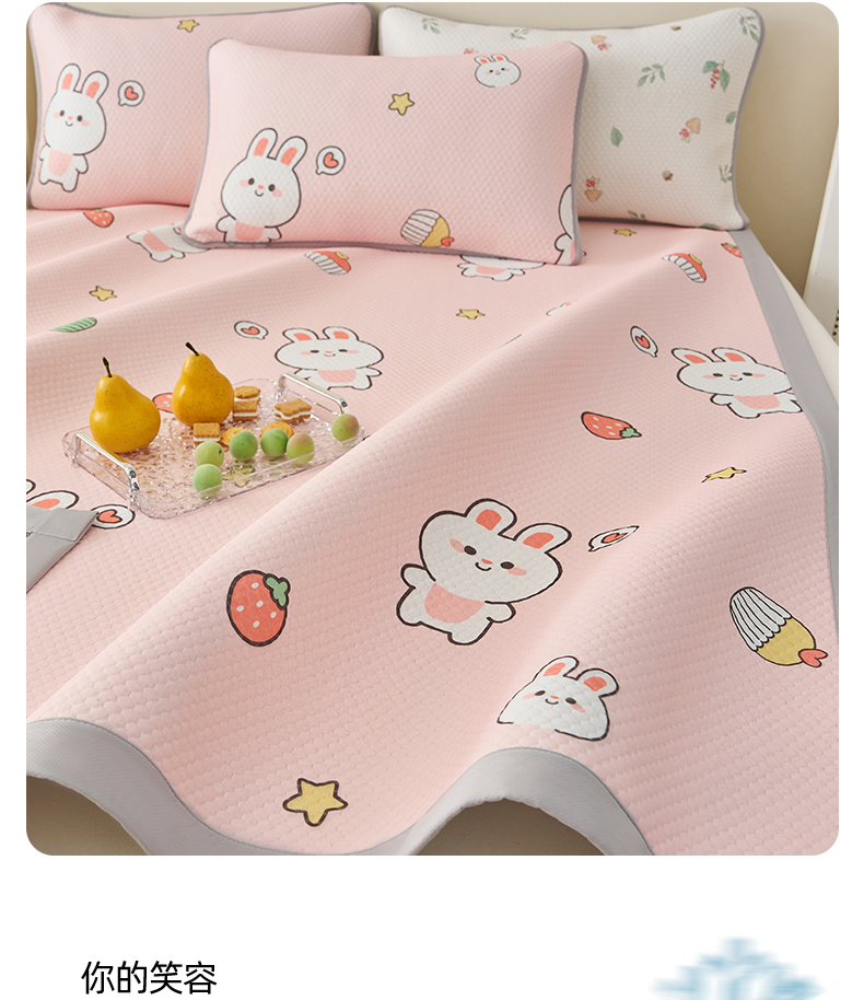 • 91家纺网 家纺一手货源 找家纺 家品罗兰 2026新款夏季A类印花冰豆豆凉席三明治透气网冰丝凉席家用双人冰丝席床单-大床图 巴比兔