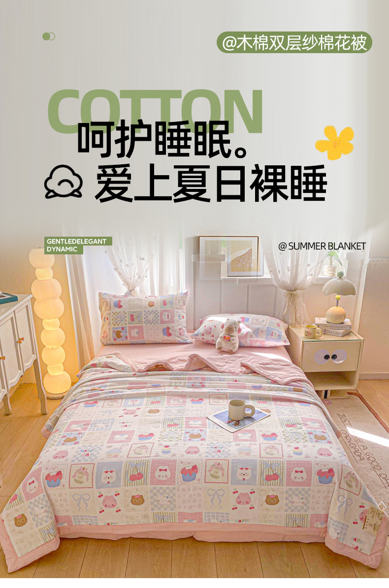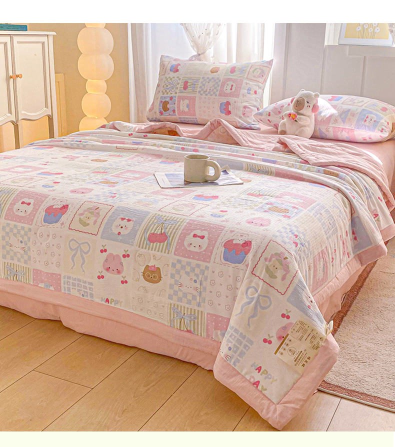(总)爱屋及屋 2026新款小清新双层纱宽包边棉花被夏凉被空调被夏被,春日小猫,动感星星,繁花-蓝,花影,花之兔,蓝点点,蓝色小丫,萌宠集,奶油块块,苹果猫,像素KT,小熊猫,星星小马,云感-蓝,治愈小猫
