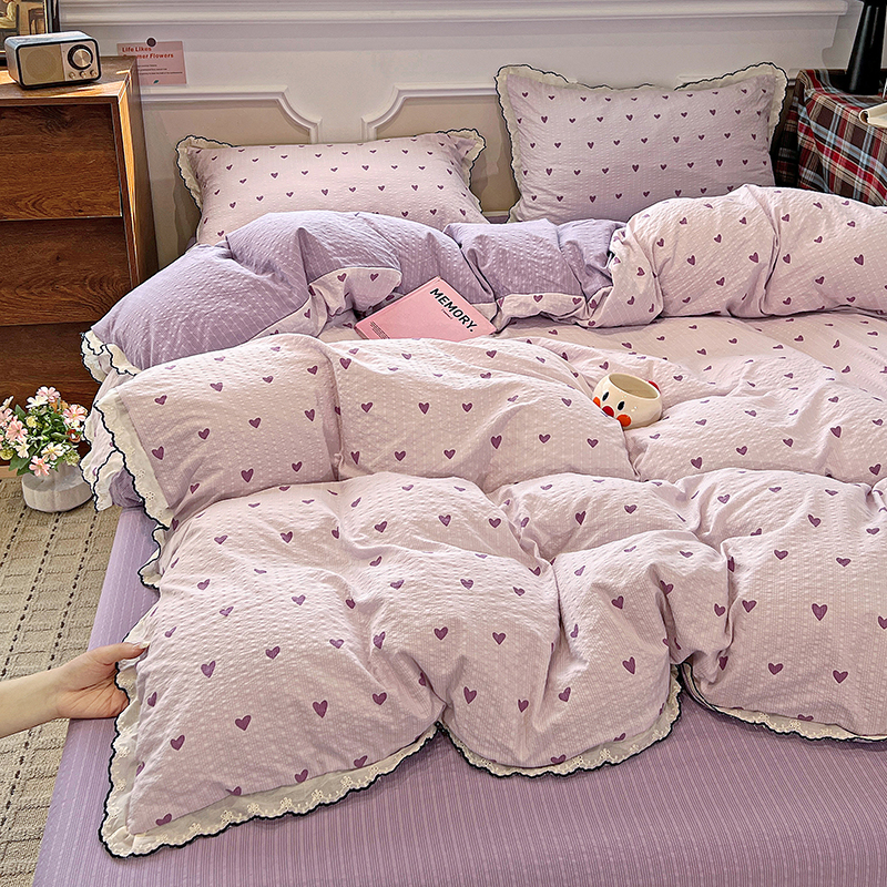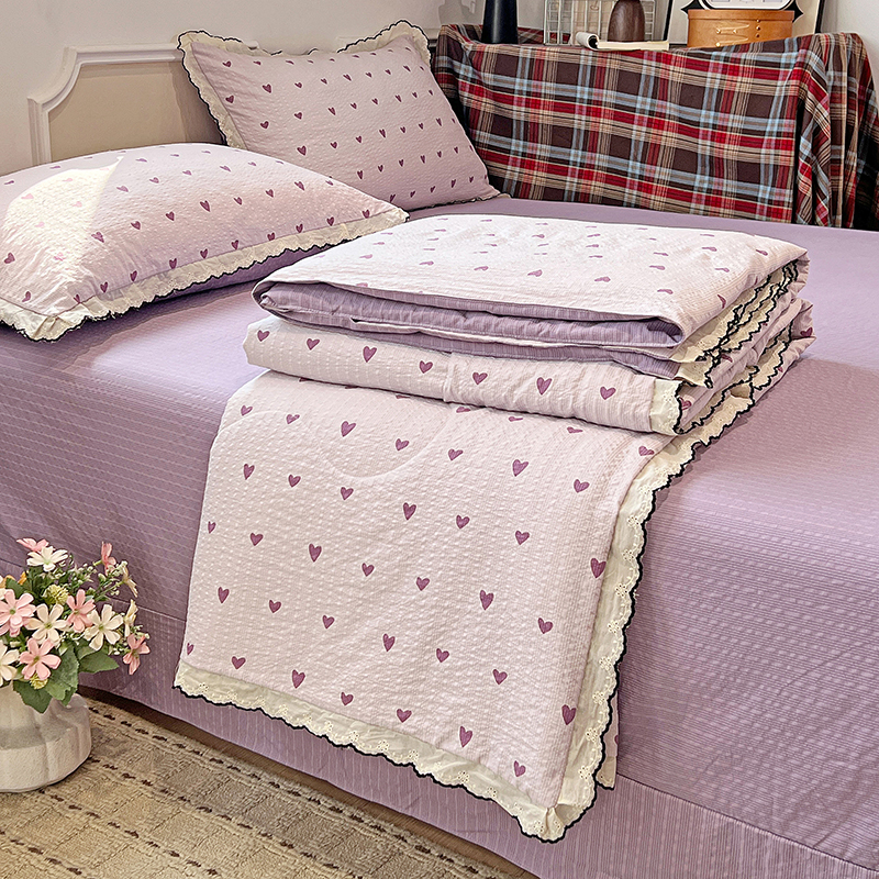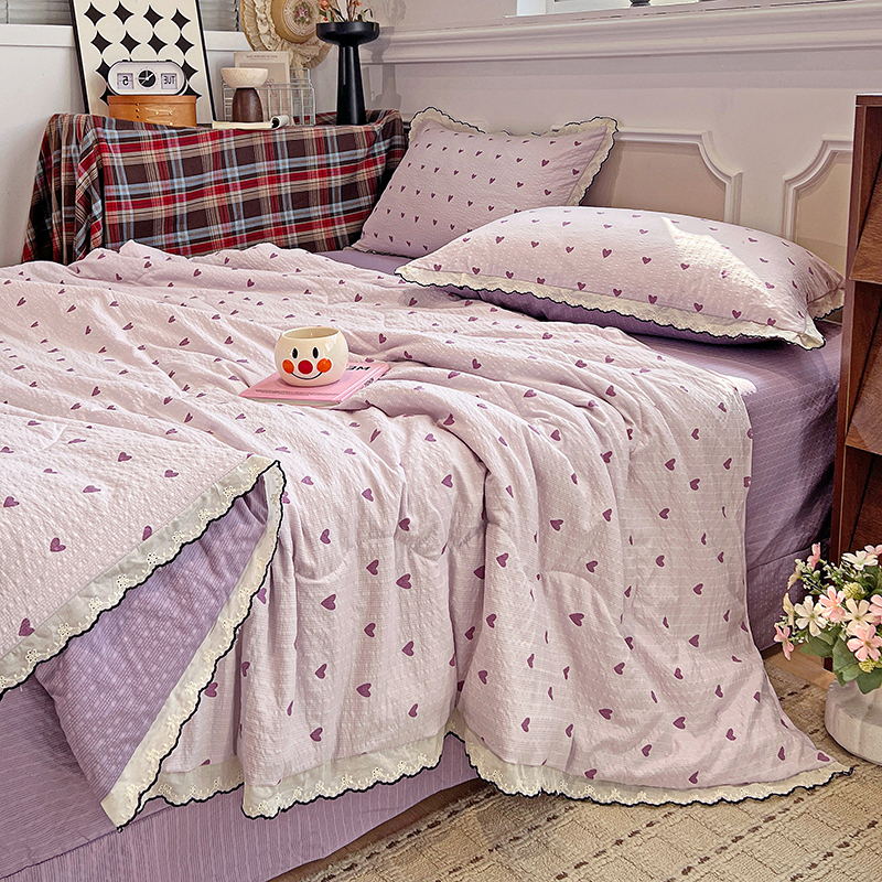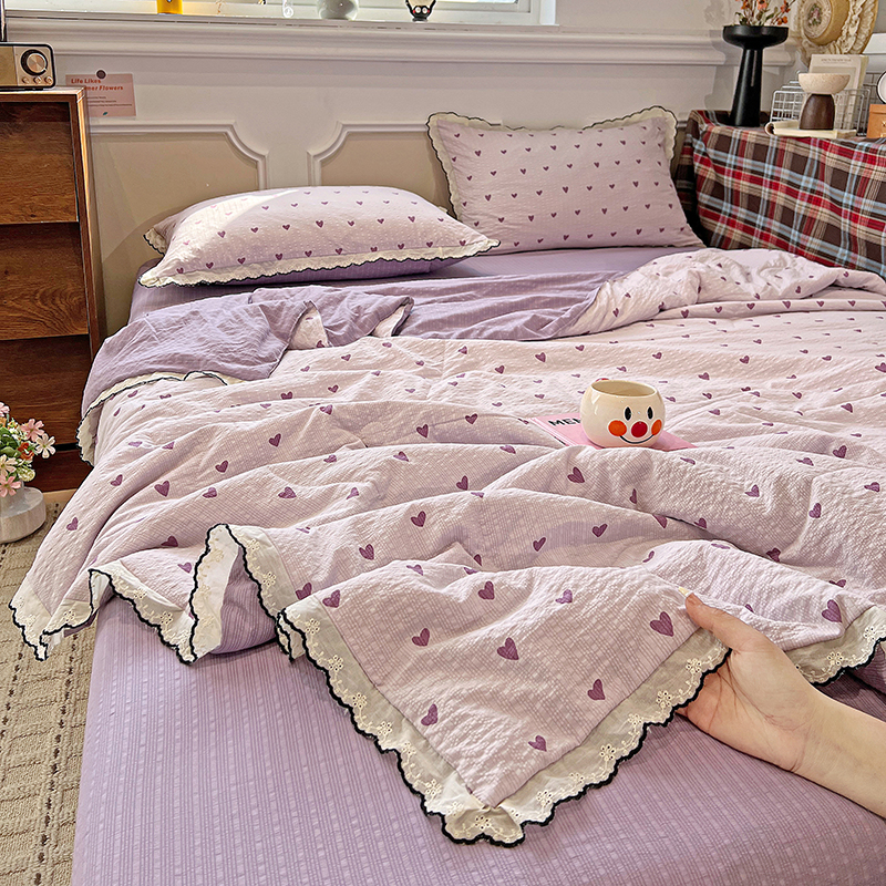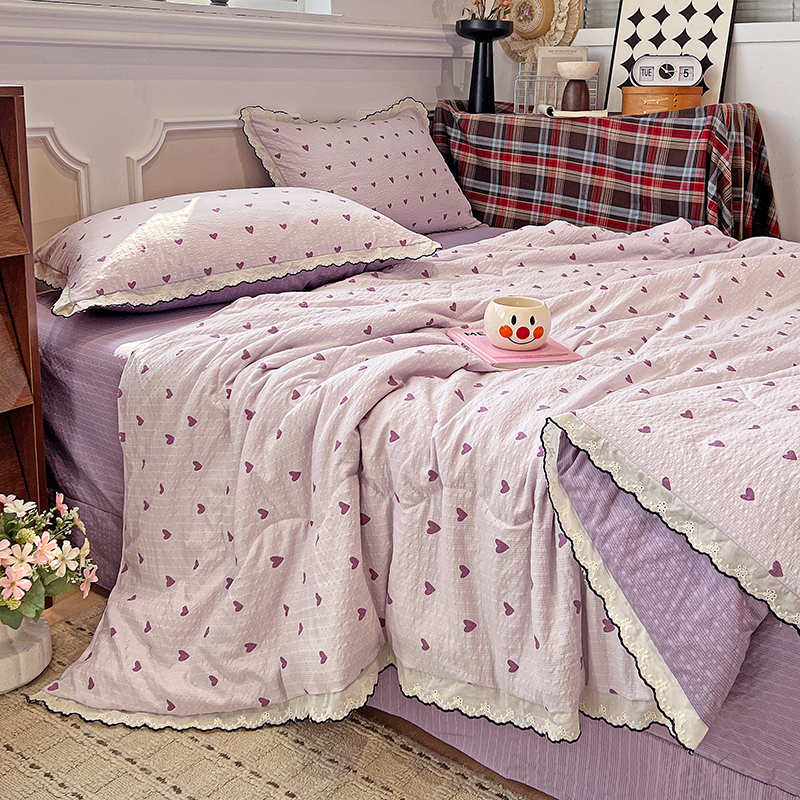 商品名称:梦莱斯 2026新款印花夏被四件套 紫色爱心