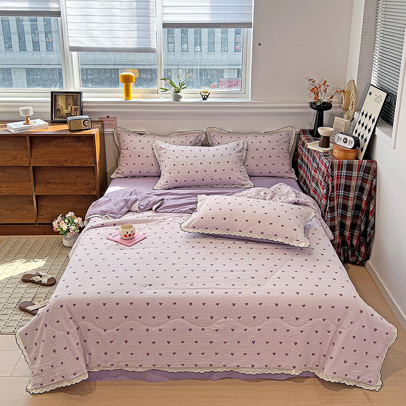 梦莱斯 2026新款印花夏被四件套 紫色爱心