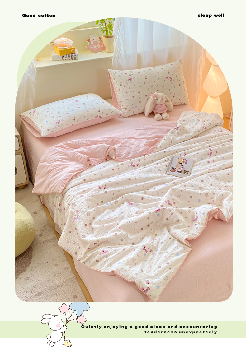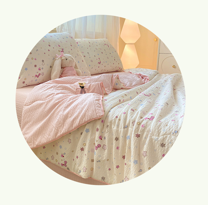 • 91家纺网 家纺一手货源 找家纺 爱屋及屋 2026新款泡芙棉夏被夏凉被空调被四件套 满天星