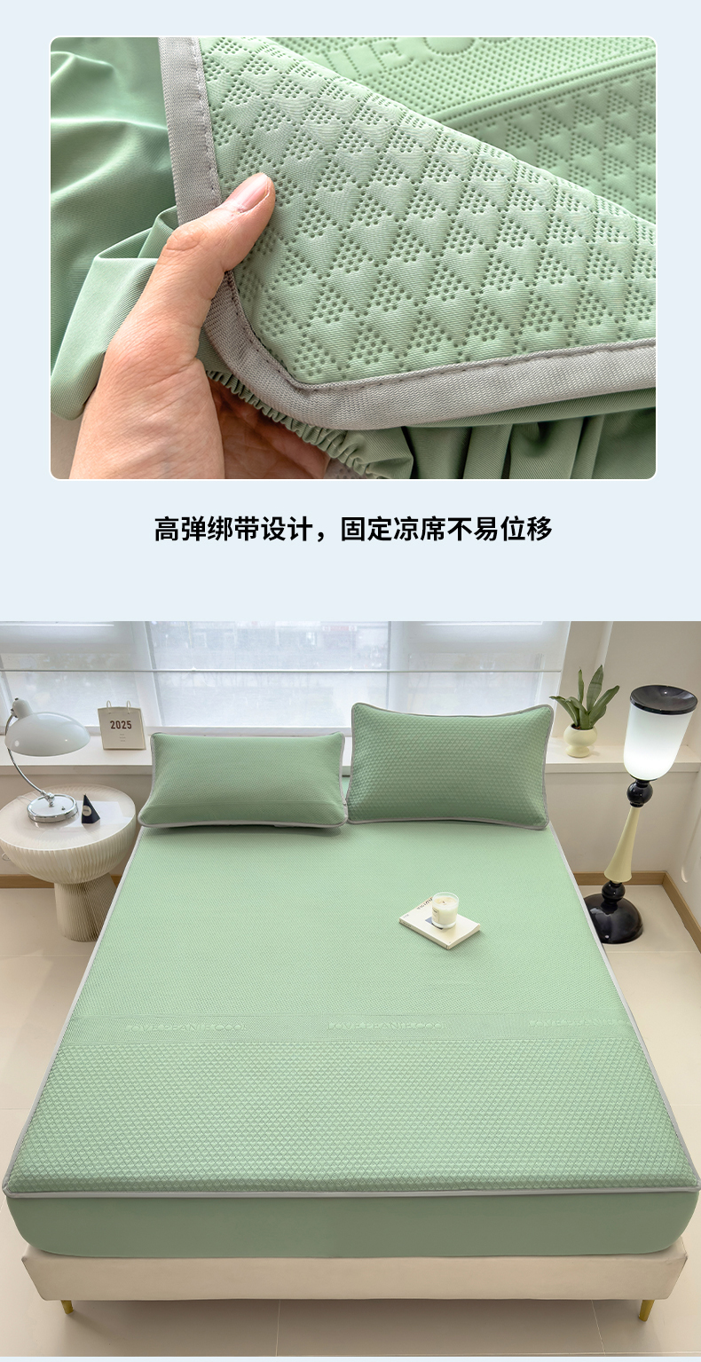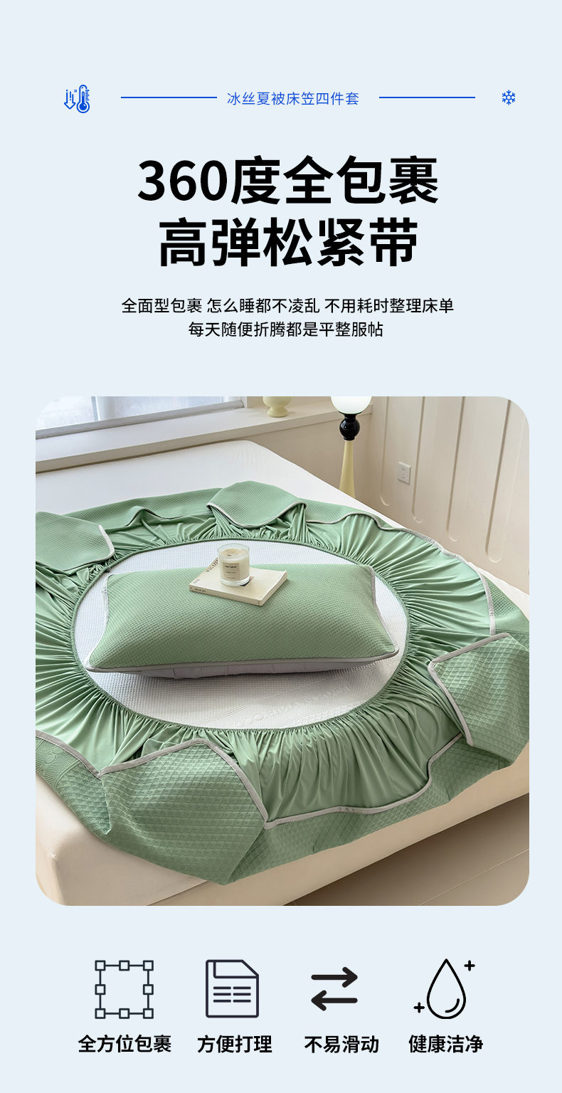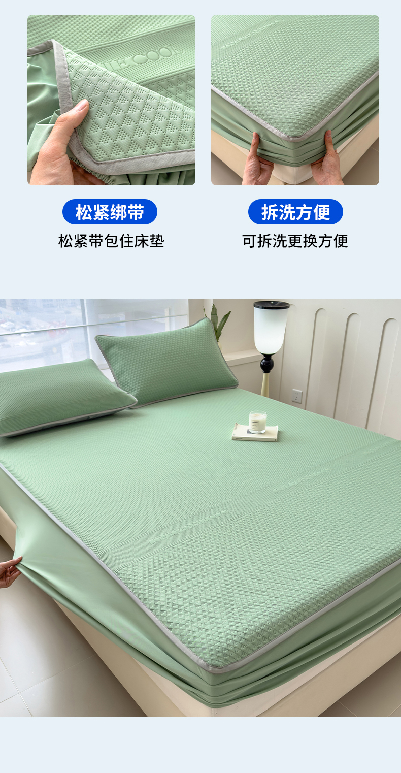 当前位置: 91家纺网 > 商品网购 > 床上用品 > 凉席 > 其他凉席 > 乐家欣 2026新款凉感冰丝夏被床笠四件套 床笠冰丝-松绿