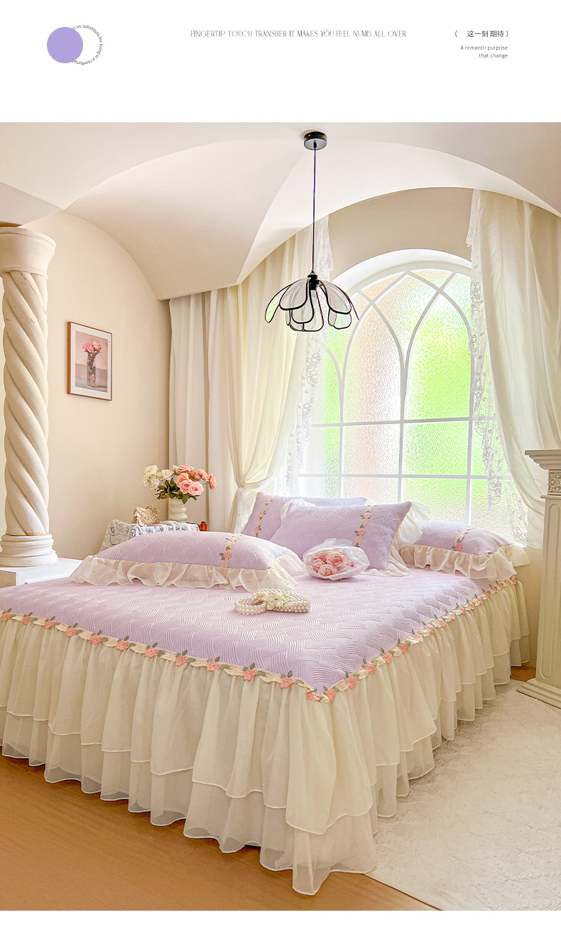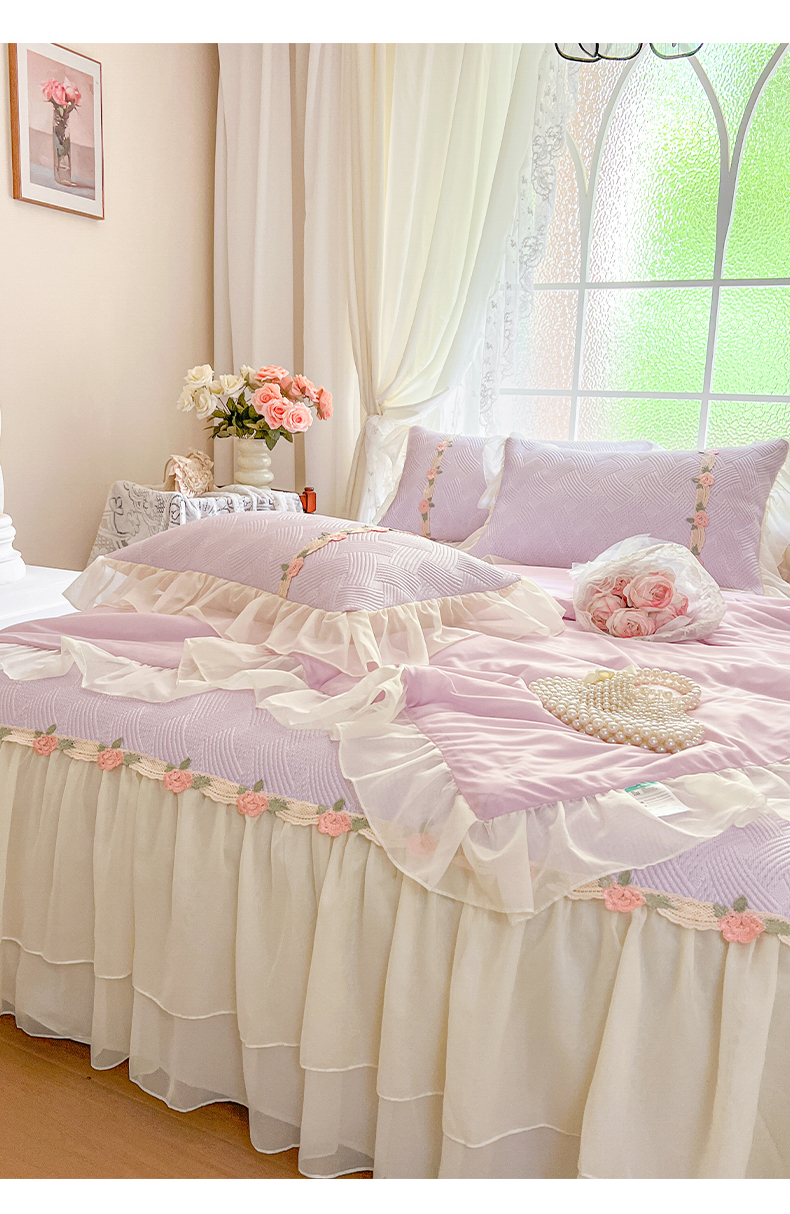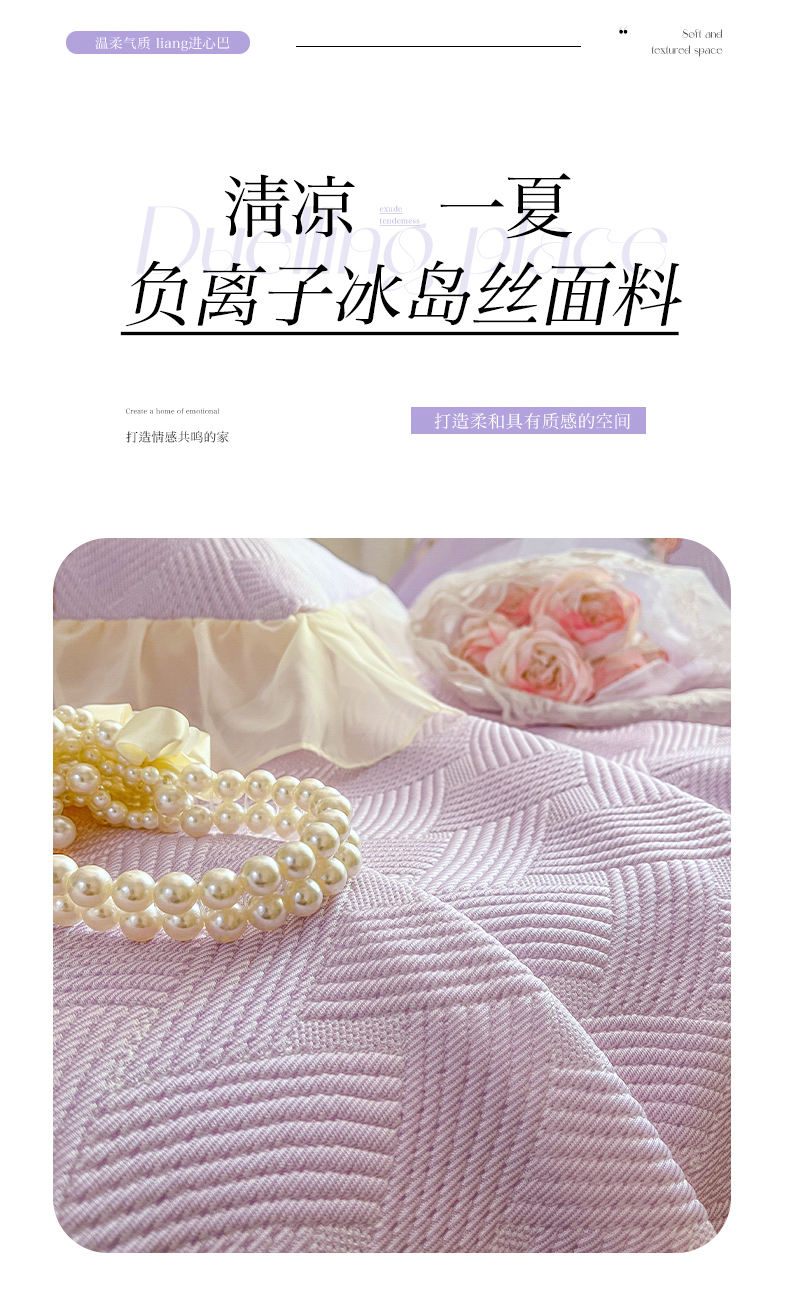 当前位置: 91家纺网 > 商品网购 > 床品套件 > 四件套 > 夏被四件套 > (总)瑞宝 2026新款负离子冰岛丝花边床裙款凉席夏被夏凉被空调被四件套-莉莉安
