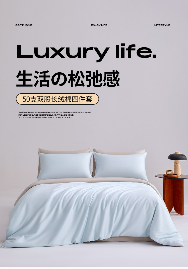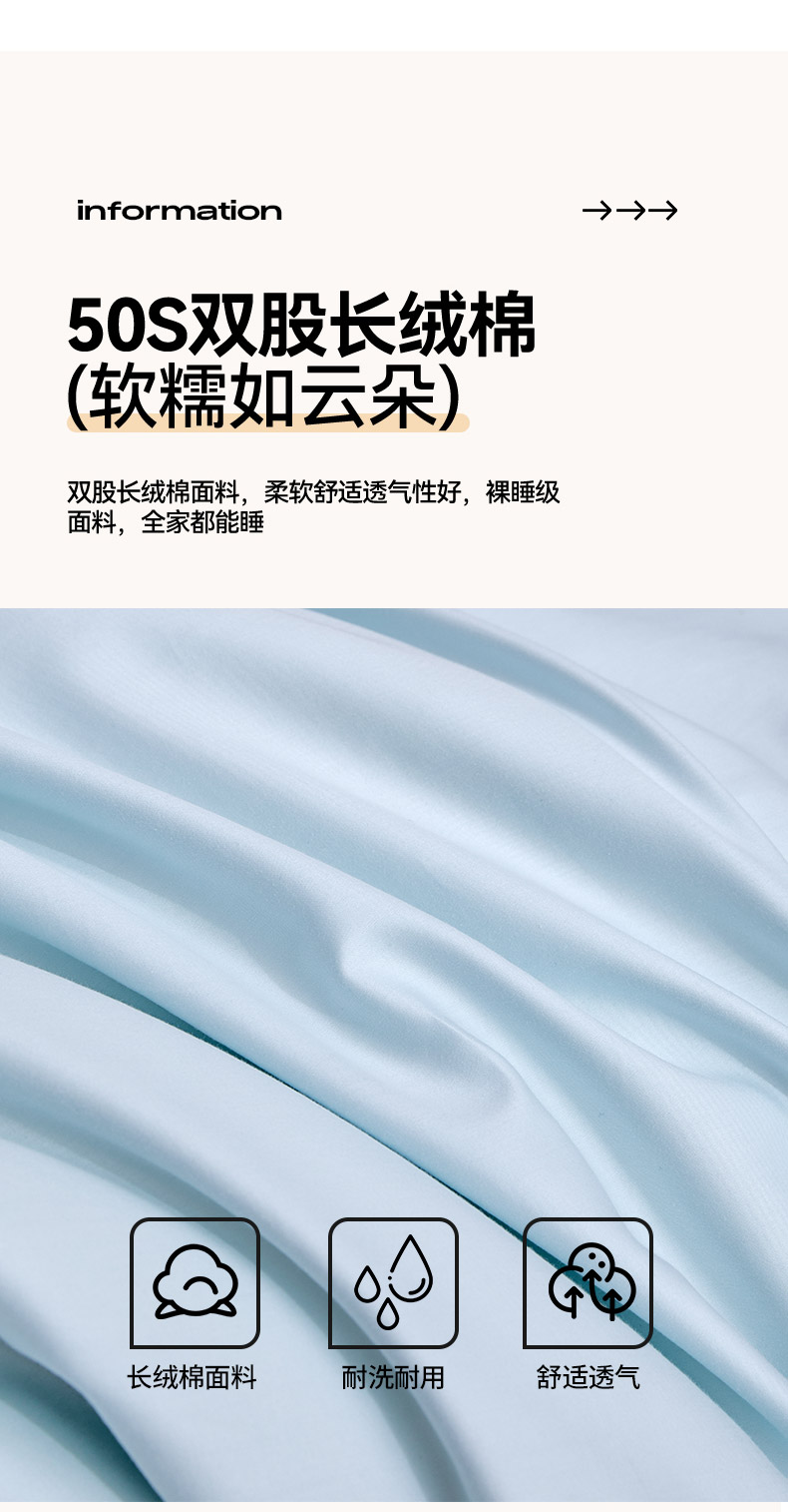 商品名称:合欢(原天一阁) 2026新款50s双股长绒棉全棉纯棉纯色四件套 水军蓝+银竹灰