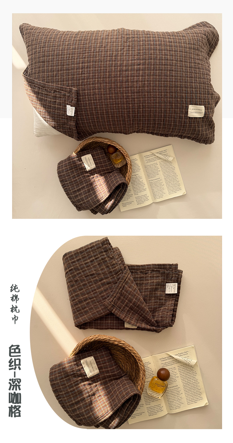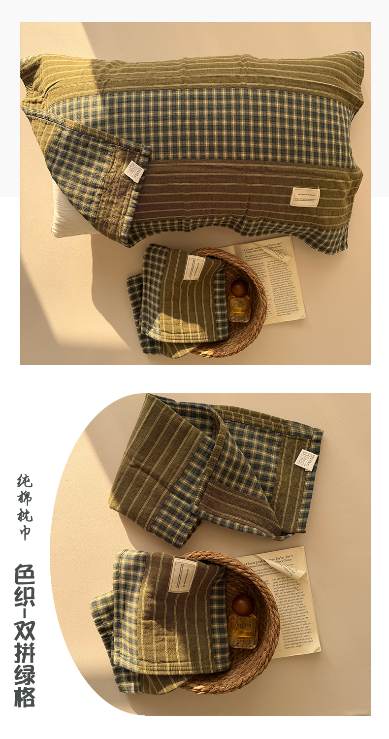 (总)百寐 2026百分百全棉A类色织枕巾52*75条纹格子美拉德色系纯棉吸汗枕巾风格二,色织 -米格,色织-红格,色织-蓝条,色织-绿格,色织-绿条,色织-浅绿格,色织-深咖格,色织-双拼绿格,色织-双拼米格,组合图(仅供展示不可下单)