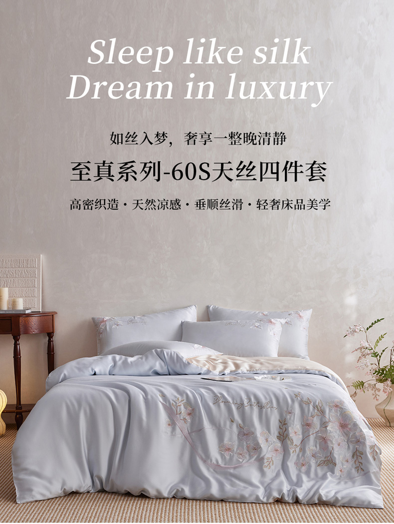 当前位置: 91家纺网 > 商品网购 > 床品套件 > 四件套 > 莱赛尔四件套 > 爱缦 2026新款60支兰精天丝四件套--至真系列 蓝米驼