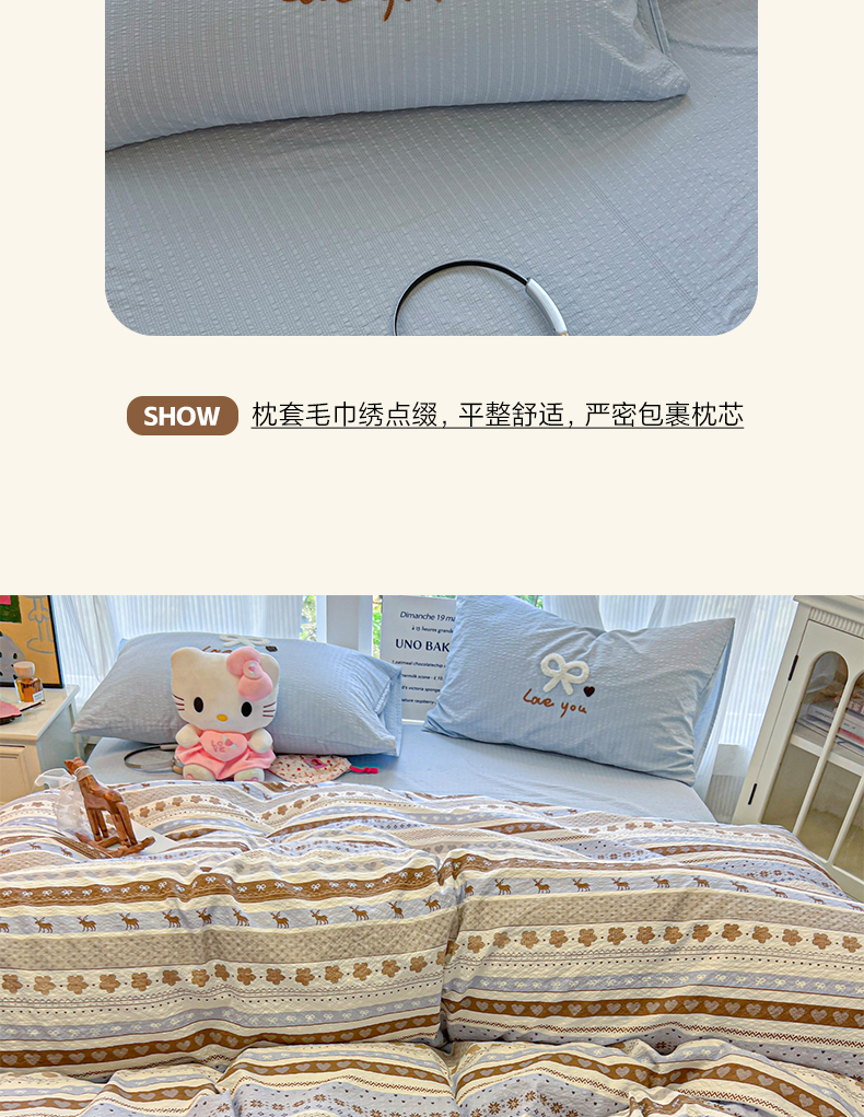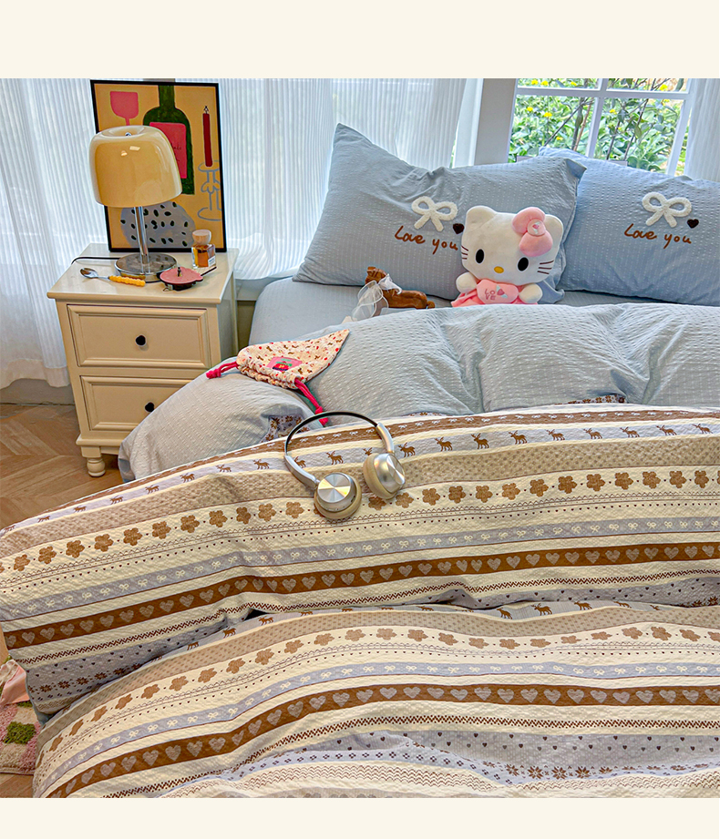 当前位置: 91家纺网 > 商品网购 > 床品套件 > 四件套 > 毛巾绣四件套 > 韩巢家纺 2026新款泡芙纱费尔岛毛巾绣四件套 小鹿织锦-毛巾绣