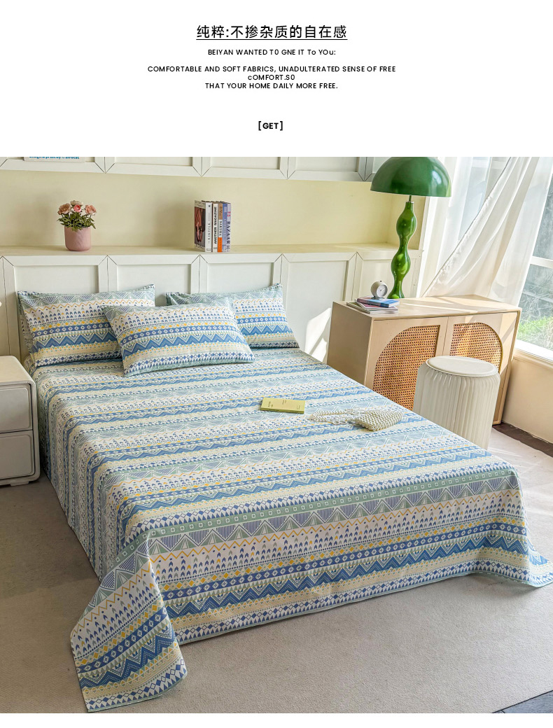 (总)晨晨家纺 2026春夏新款小清新全棉纯棉印花床单三件套,爱巢,安妮兔,饼干熊,波西米亚,布鲁斯,丛林意趣,花韵,凯蒂公主,乐天派,马上有钱,秘境,墨蝶,泡泡熊,塞浦路斯,汀兰点素,晚风轻漫,幸运叶,薰衣草,雅卉,悠蓝