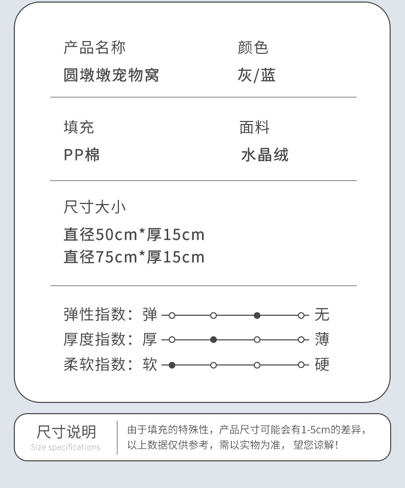 (总)永光家居 2026新款圆墩墩宠物窝可拆卸猫窝狗窝四季通用猫咪用品狗狗用品,蓝色 50x50x15cm,灰色 50x50x15cm,组合图仅供展示-不可下单 50x50x15cm,蓝色 75x75x15cm,灰色 75x75x15cm,组合图仅供展示-不可下单 75x75x15cm