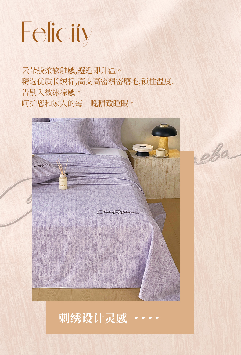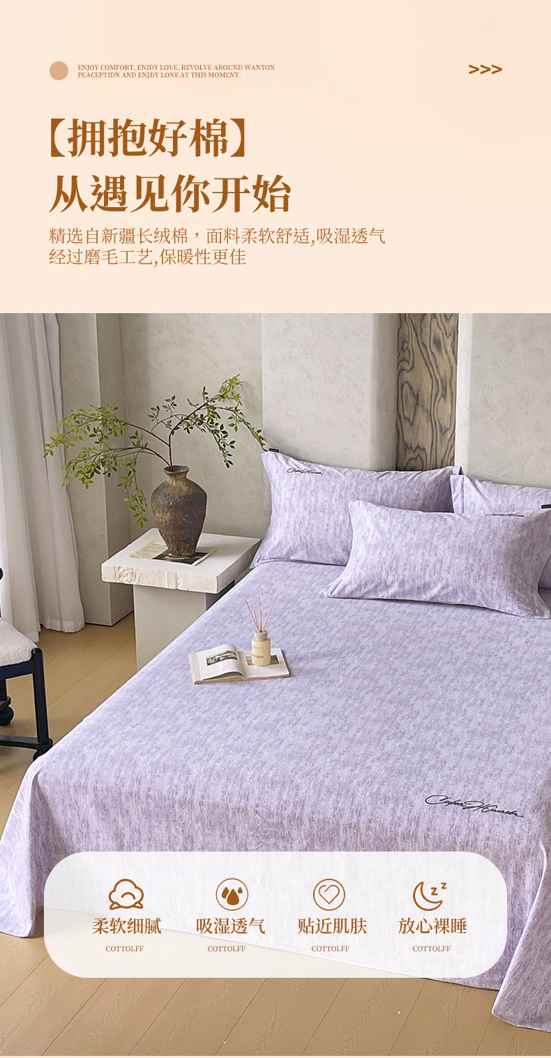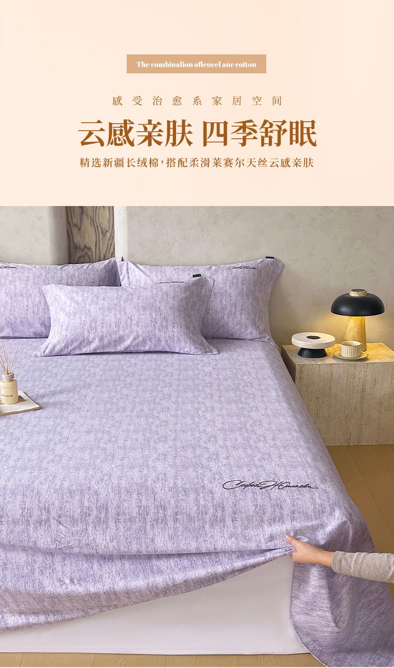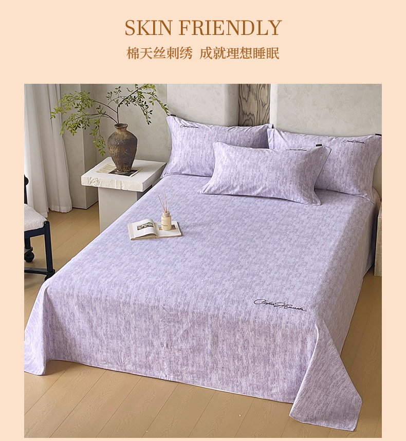 春皖家纺 2026春夏新款天丝棉刺绣单床单 床单单件 曼妮-紫