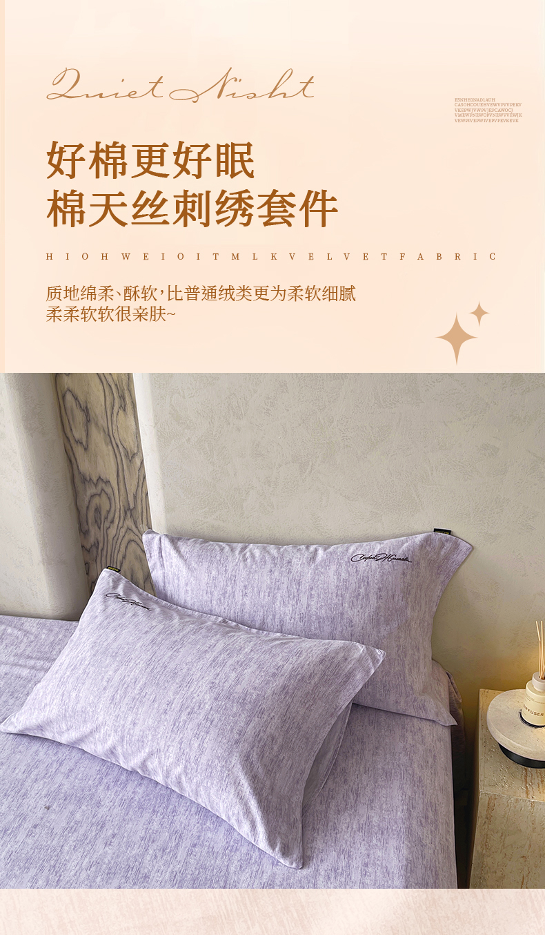 (总)春皖家纺 2026春夏新款天丝棉刺绣四件套,宝绮蓝,亮绮黄,曼妮-贝壳色,曼妮-绿萝纱,曼妮-云褐色,曼妮-紫,苔绮绿,钛绮灰,樱绮丝