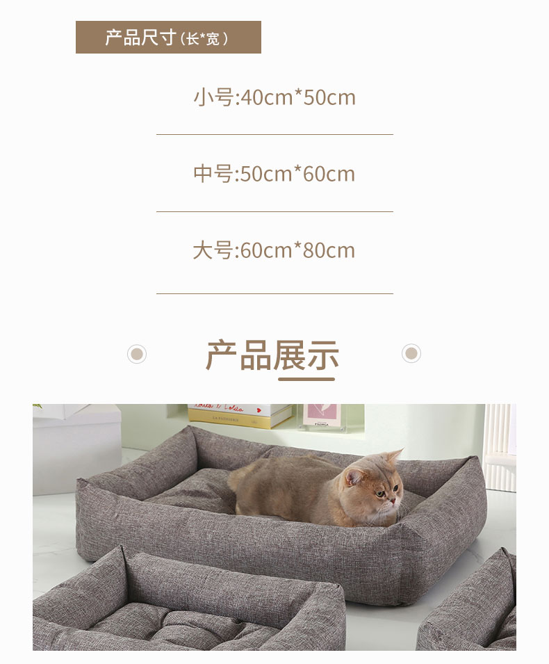 (总)永光家居 2026新款仿麻宠物窝猫窝狗窝四季通用猫咪用品狗狗用品,烟灰色 40x50cm,麻色 40x50cm,组合图仅供展示-不可下单 40x50cm,烟灰色 50x60cm,麻色 50x60cm,组合图仅供展示-不可下单 50x60cm,烟灰色 60x80cm,麻色 60x80cm,组合图仅供展示-不可下单 60x80cm