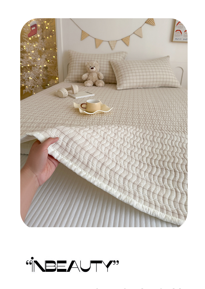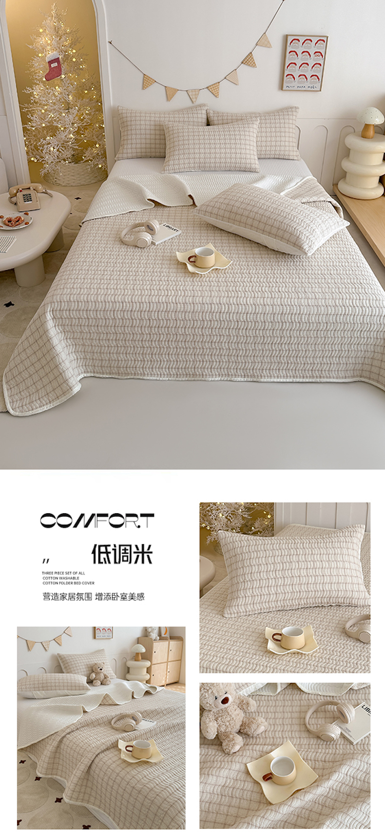 欣宜家纺 2026新款A类全棉纯棉水洗棉夹棉床盖三件套床褥子软床垫 简格低调米
