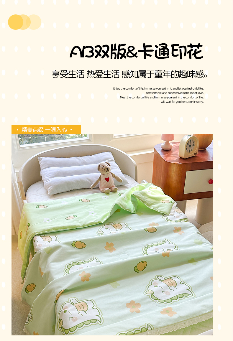 (总)春妮家纺 2026新款卡通幼儿园全棉儿童夏被夏凉被空调被,组合图仅做展示不可下单,恐龙假日,萌宠乐园,萌萌奶龙,甜心小熊,甜心玉桂狗,兔子甜甜,心花怒放,休闲娱乐